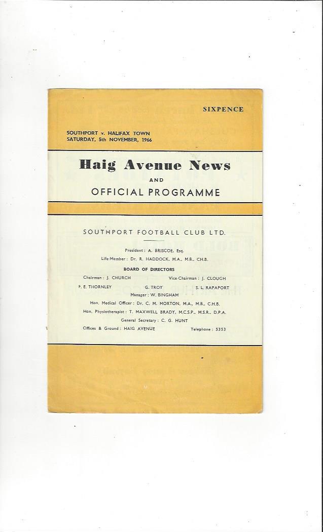 1966/67 Southport v Halifax Town Football Programme