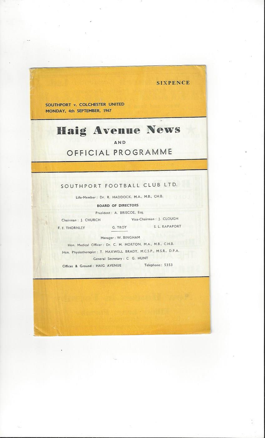 1967/68 Southport v Colchester United Football Programme