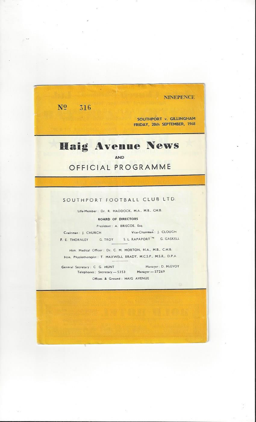 1968/69 Southport v Gillingham Football Programme