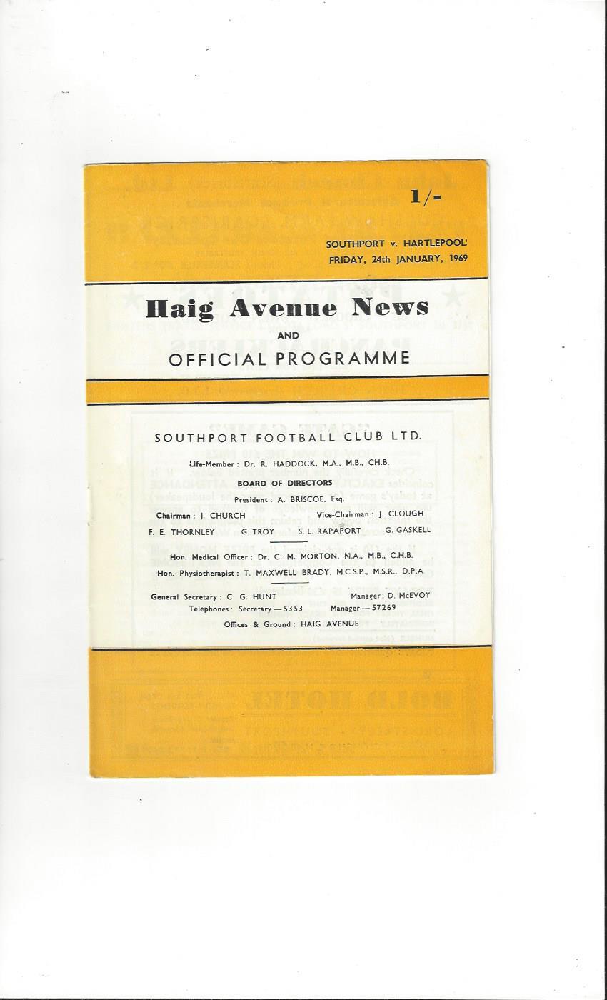 1968/69 Southport v Hartlepool United Football Programme