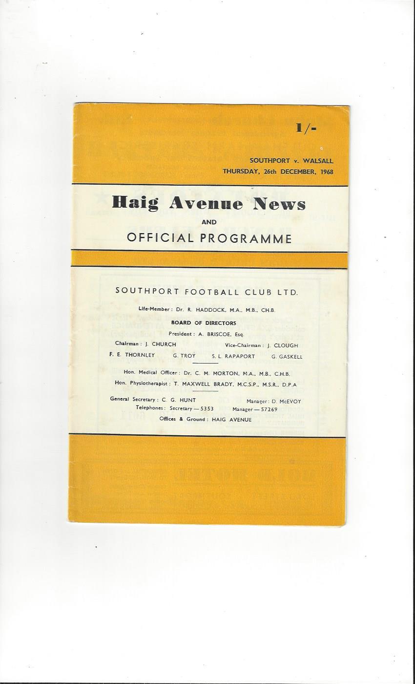1968/69 Southport v Walsall Football Programme