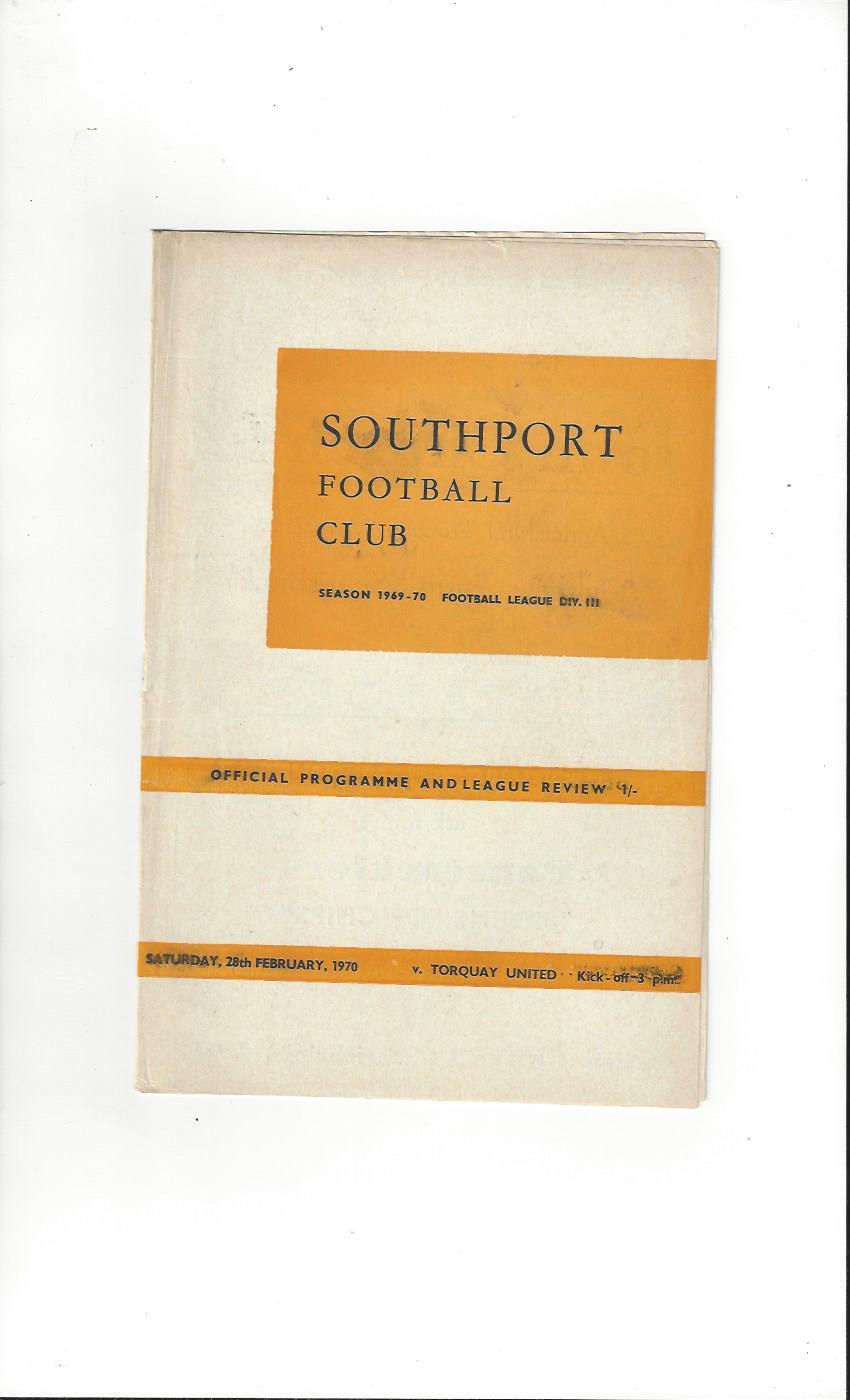 1969/70 Southport v Torquay United Football Programme
