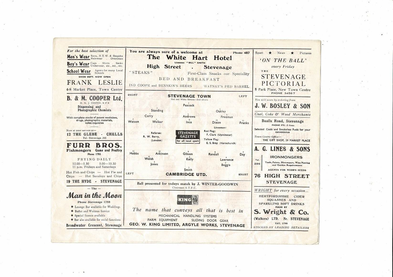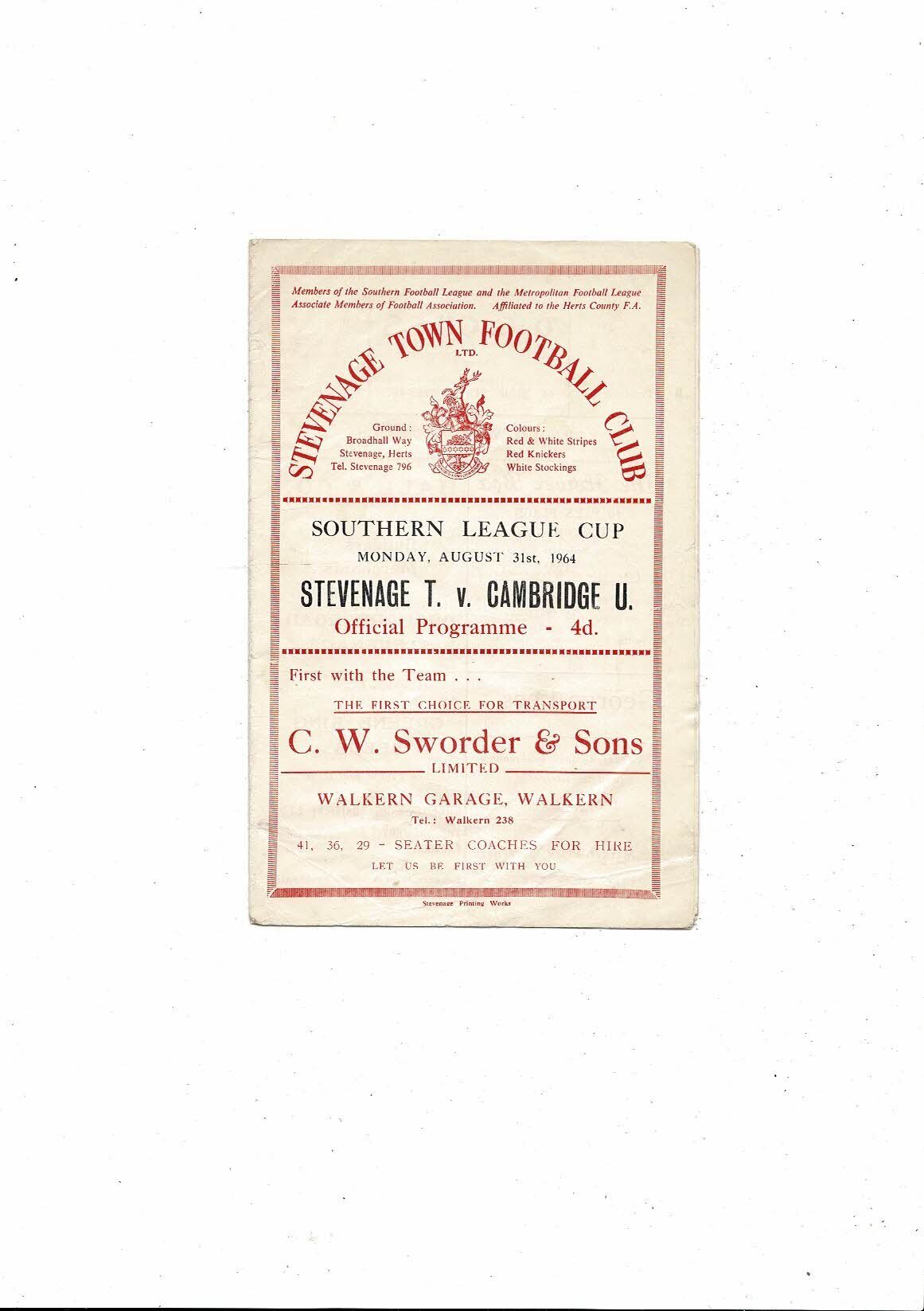 1964/65 Stevenage Town v Cambridge United Southern League Cup Programme