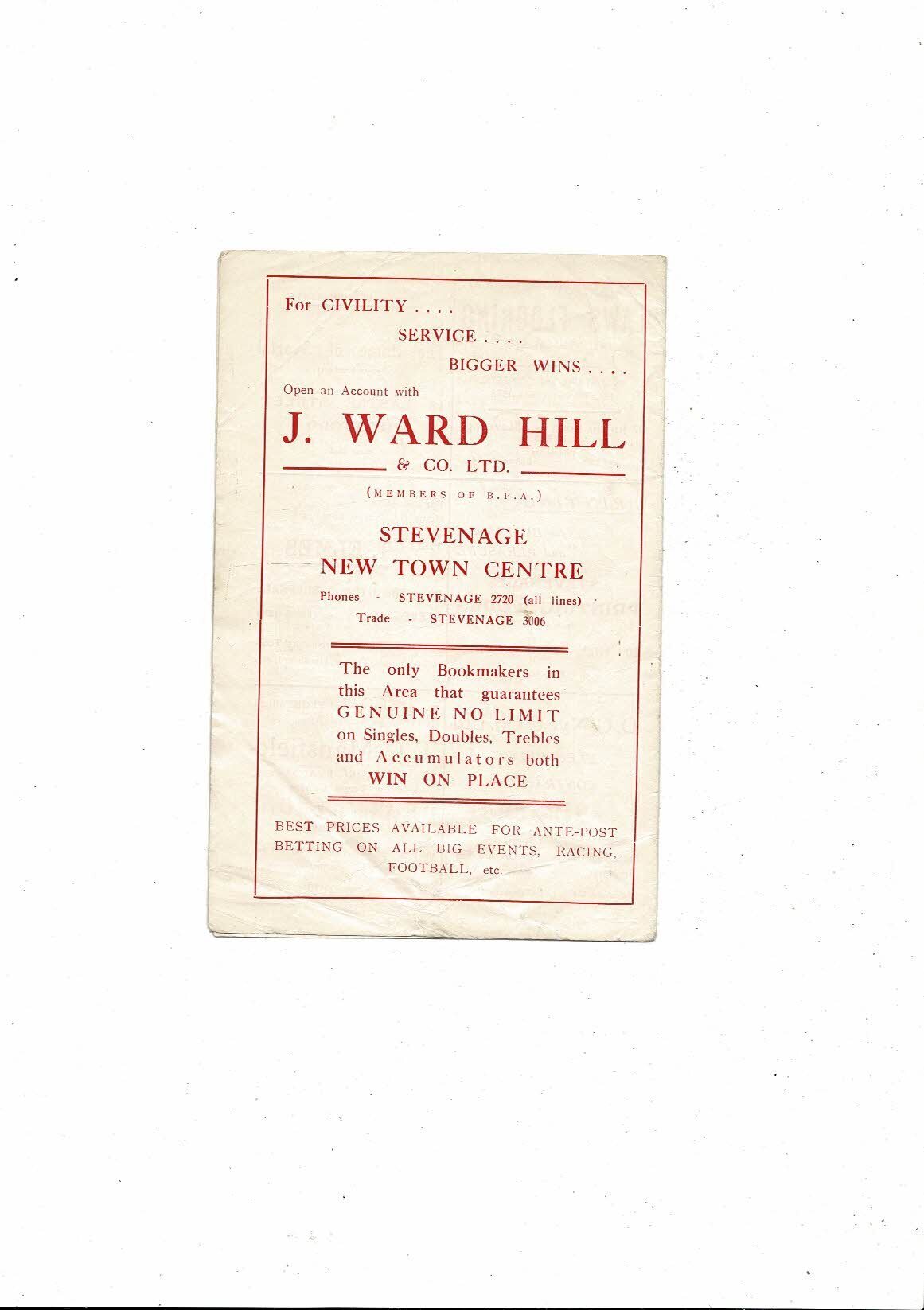 This Original Football Programme is creased with tear on front, several tiny nic's, tiny piece missing at both ends of spine. No handwriting. Please note this programme has never had a staple. Please see scans.