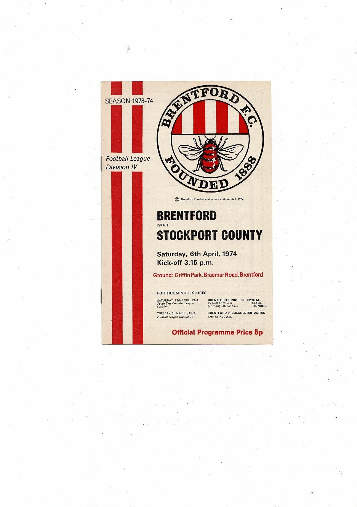 1973/74 Brentford v Stockport County Football Programme