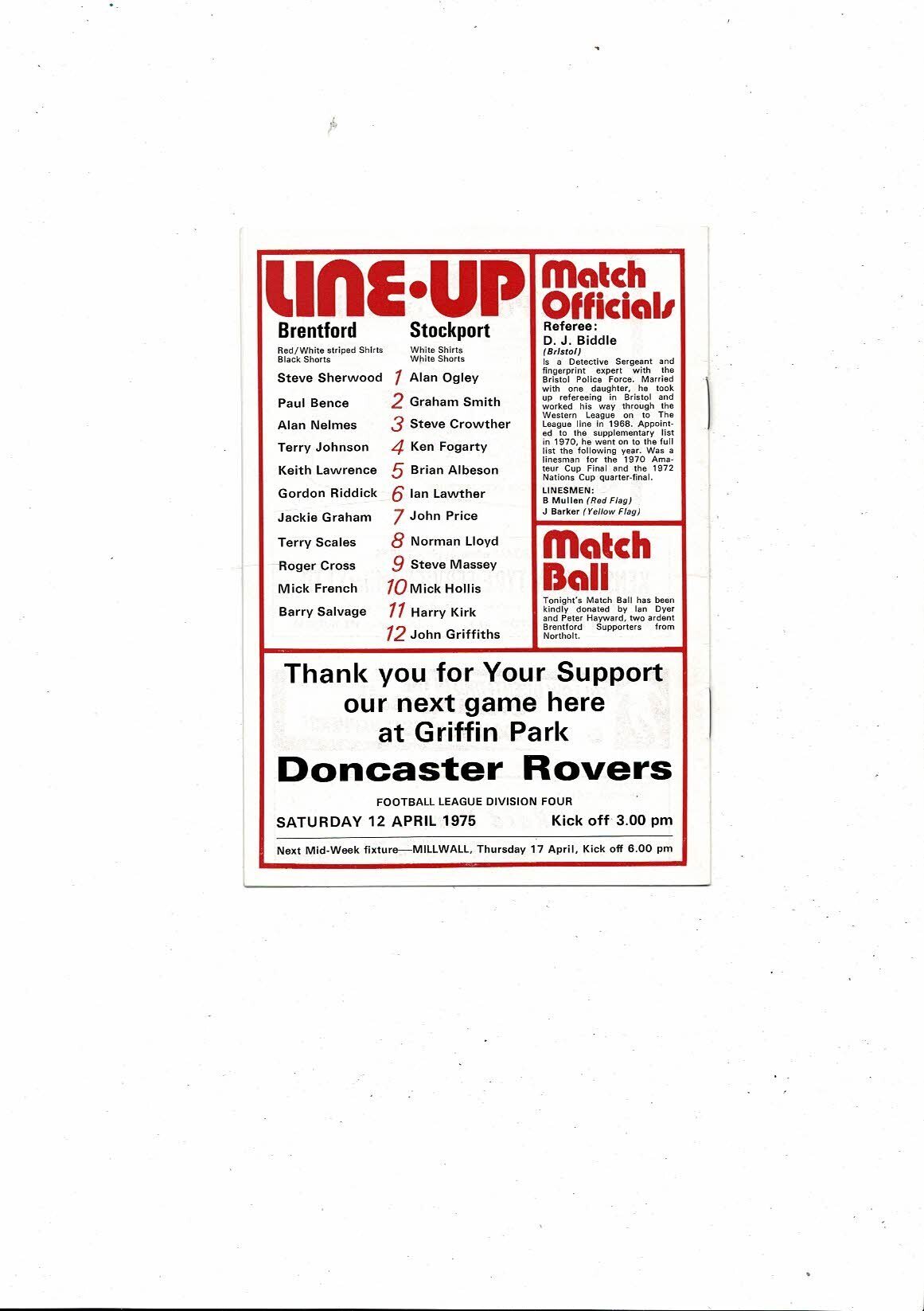 1974/75 Brentford v Stockport County Football Programme