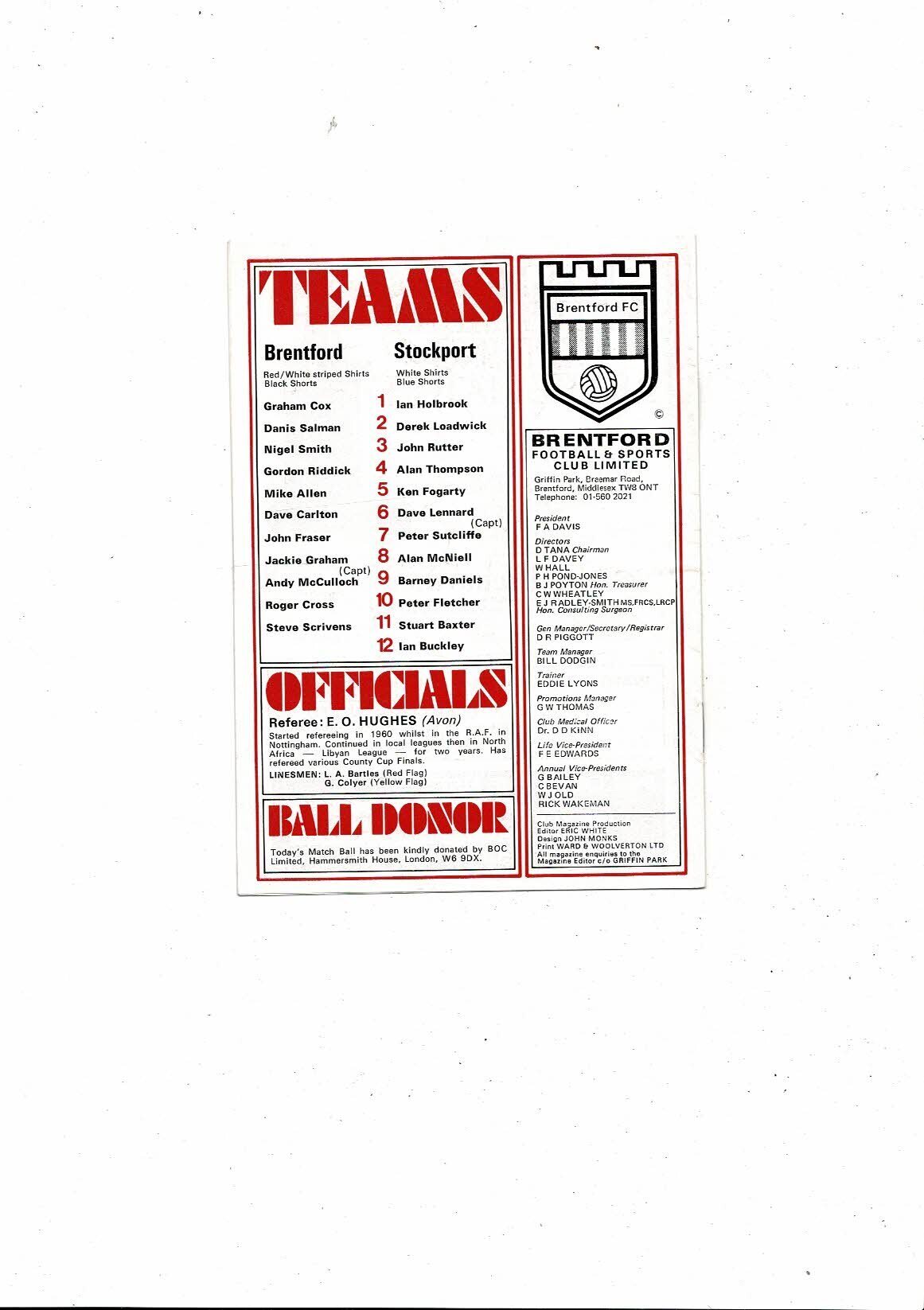 1976/77 Brentford v Stockport County Football Programme