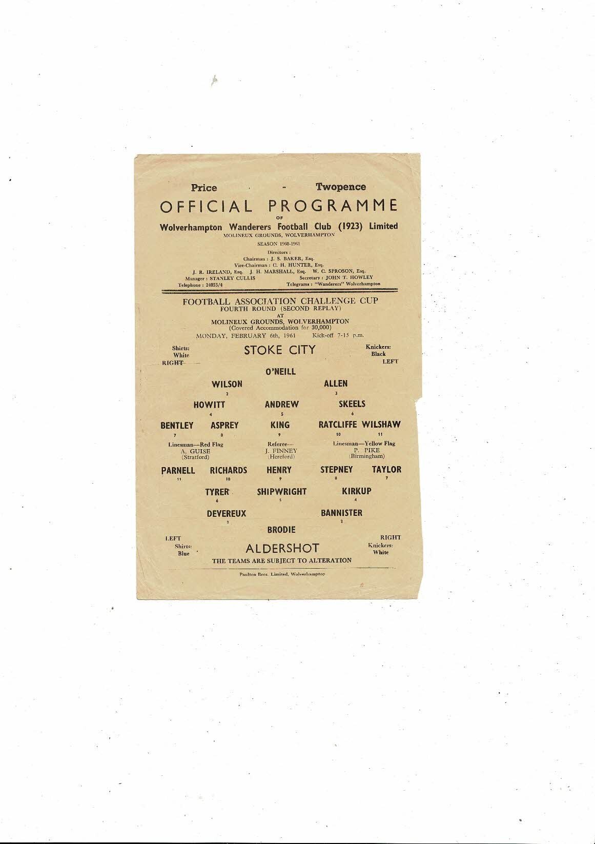 1960/61 Stoke City v Aldershot FA Cup Replay Football Programme @ Wolves