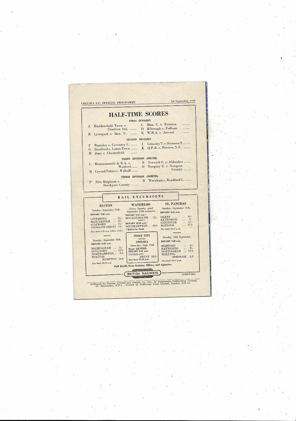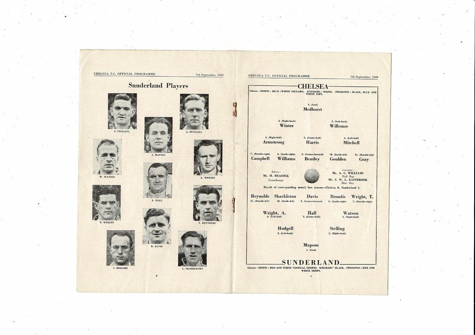 1949/50 Chelsea v Sunderland Football Programme