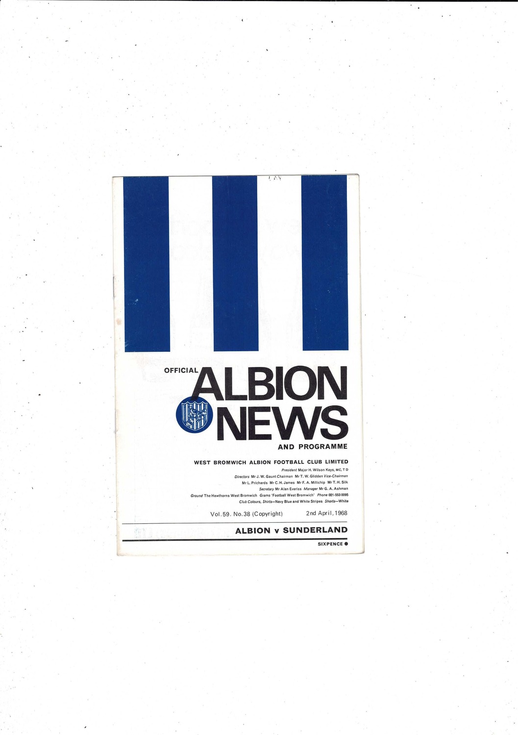 1967/68 West Bromwich Albion v Sunderland Football Programme April