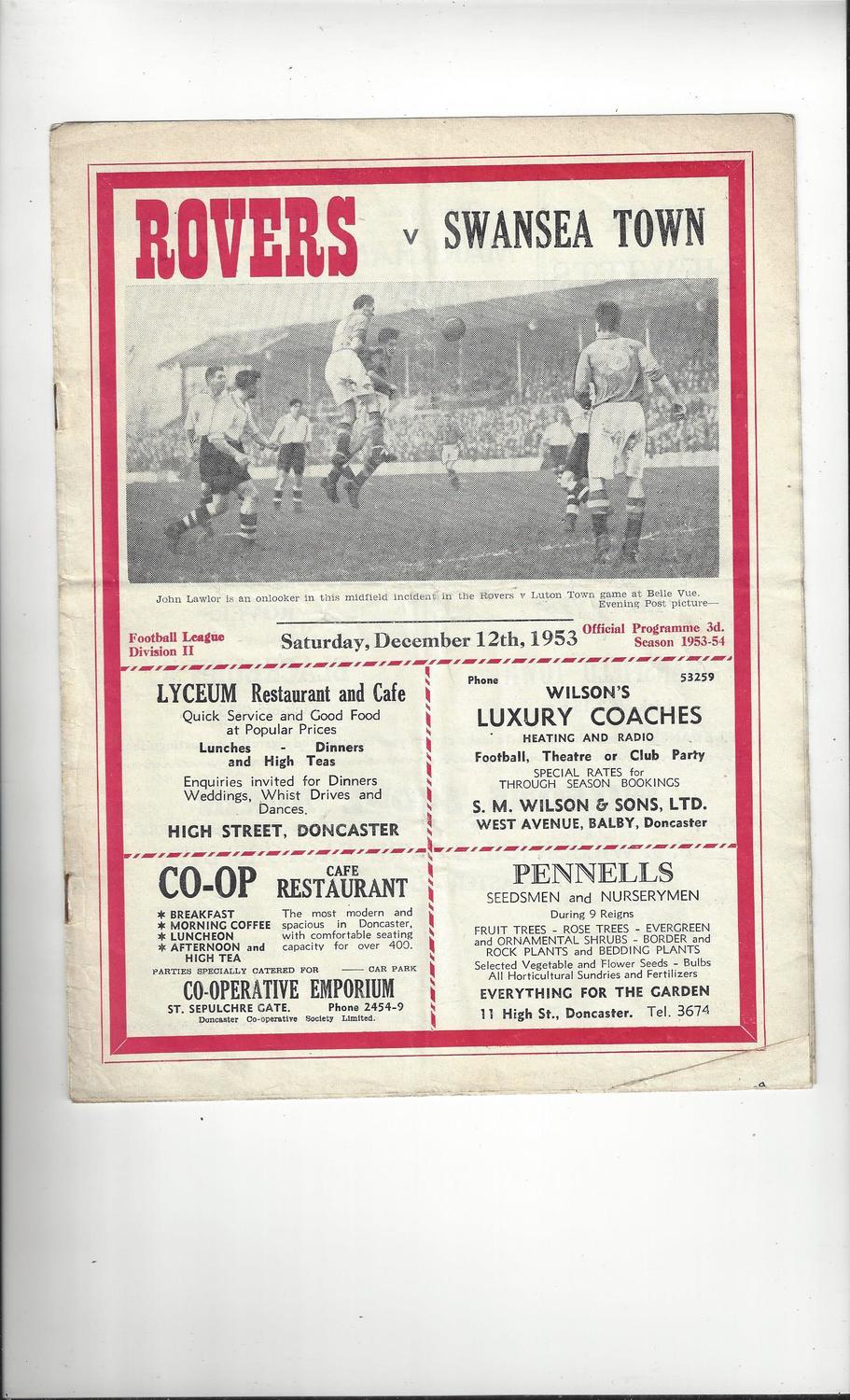 1953/54 Doncaster Rovers v Swansea Town Football Programme