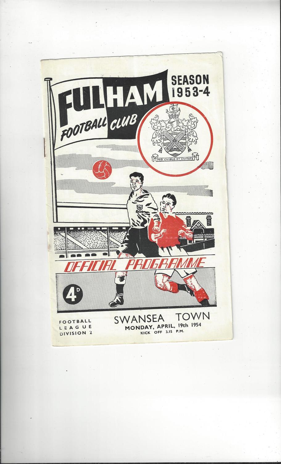 1953/54 Fulham v Swansea Football Programme