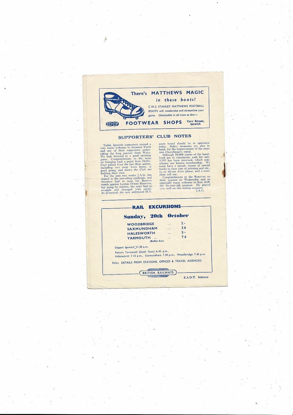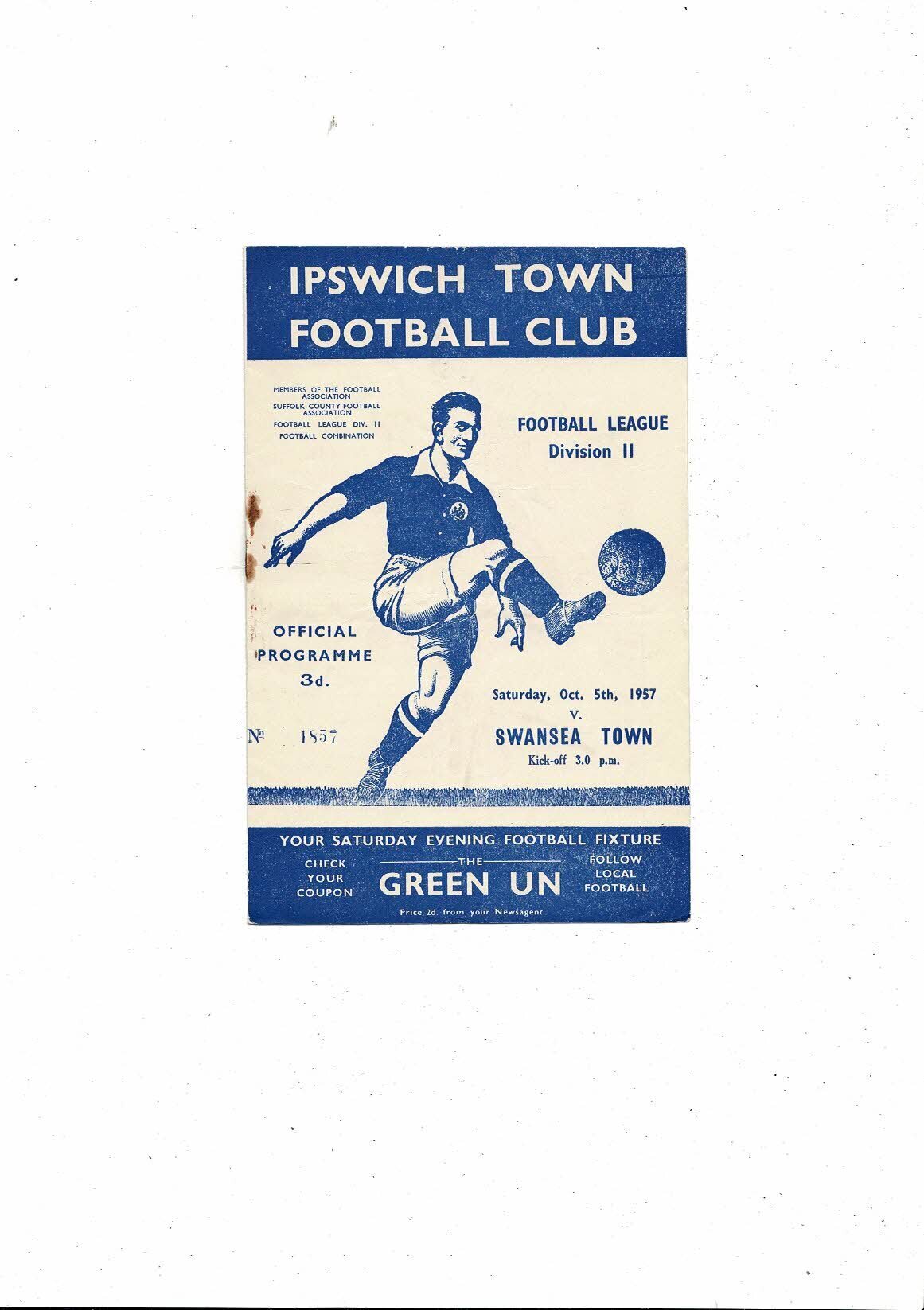 1957/58 Ipswich Town v Swansea Football Programme