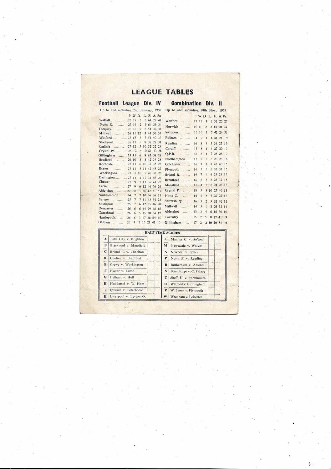 1959/60 Gillingham v Swansea FA Cup Football Programme