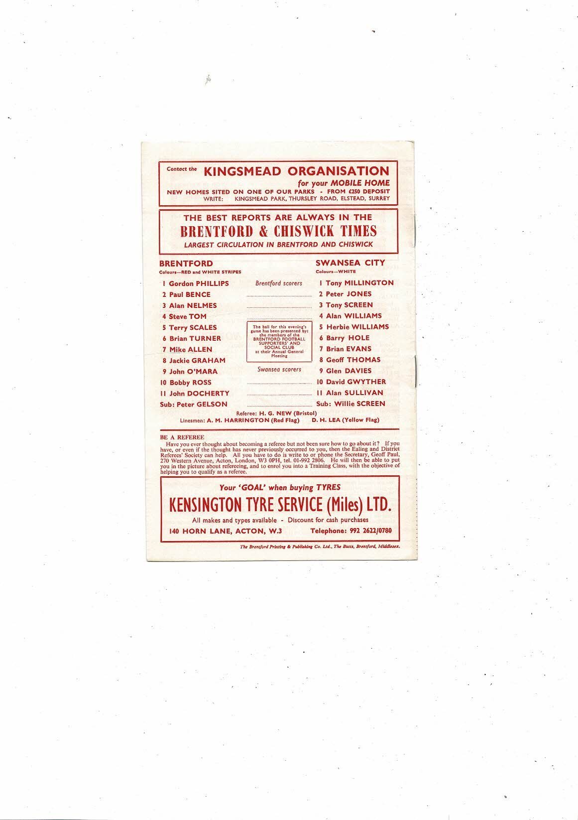 1971/72 Brentford v Swansea City FA Cup Replay Football Programme