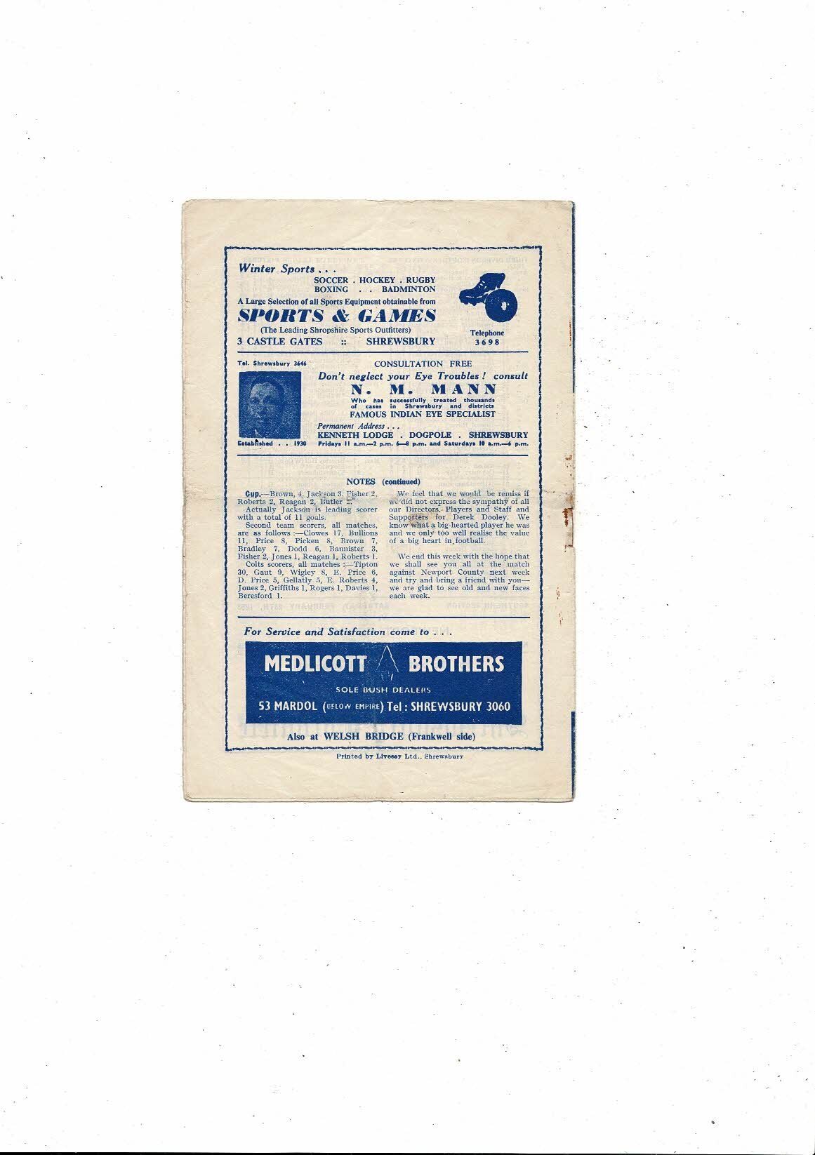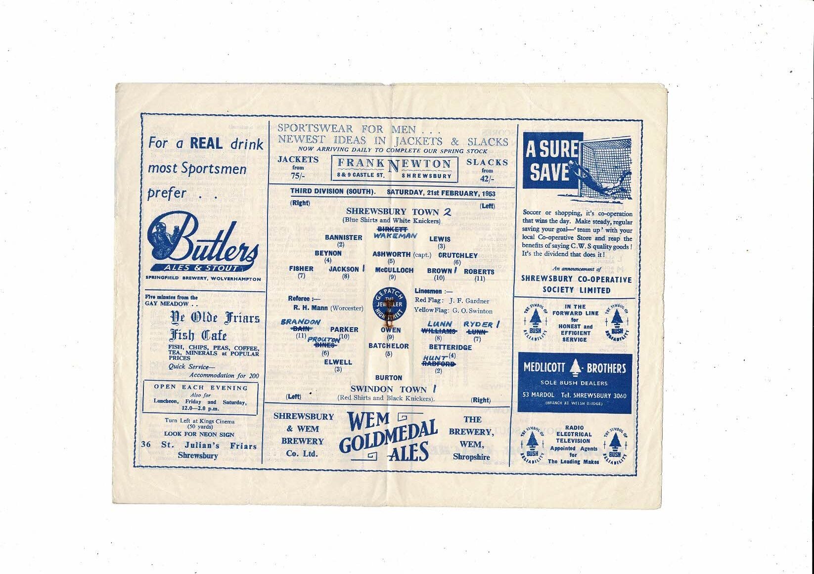 1952/53 Shrewsbury Town v Swindon Town Football Programme