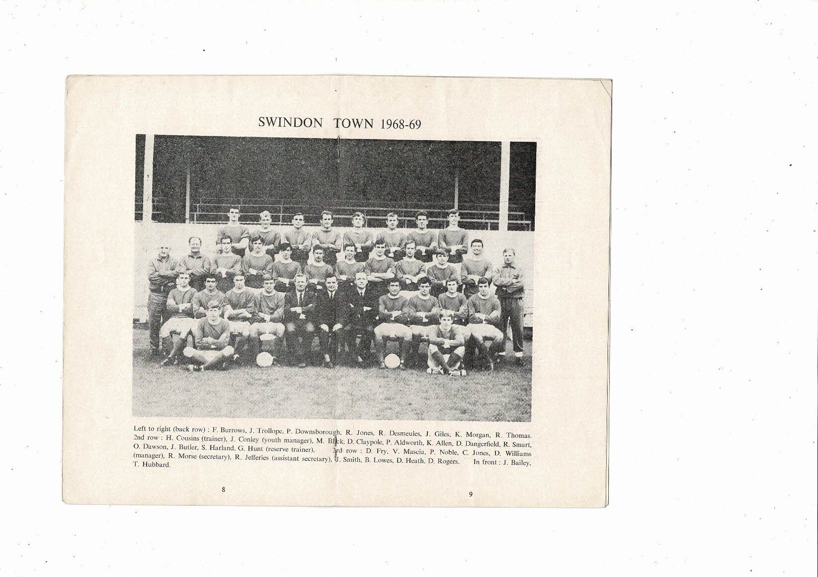 1968/69 Barnsley v Swindon Town Football Programme
