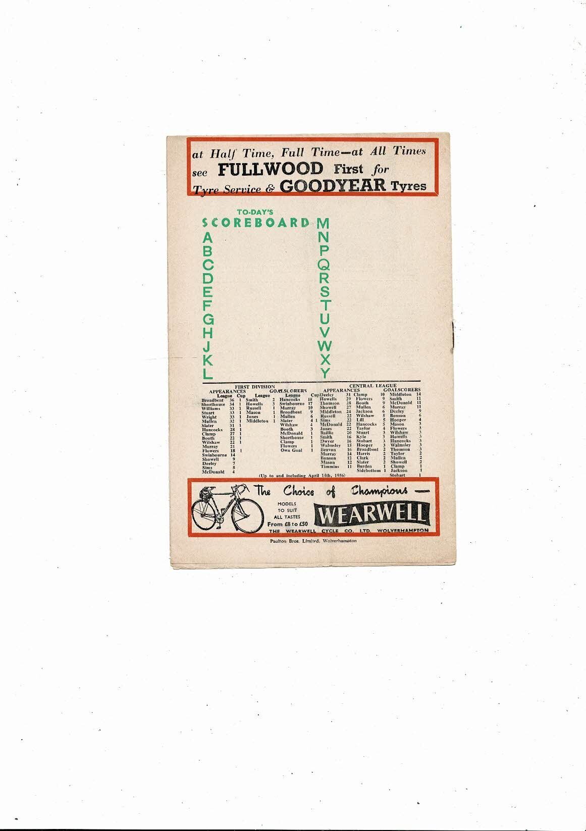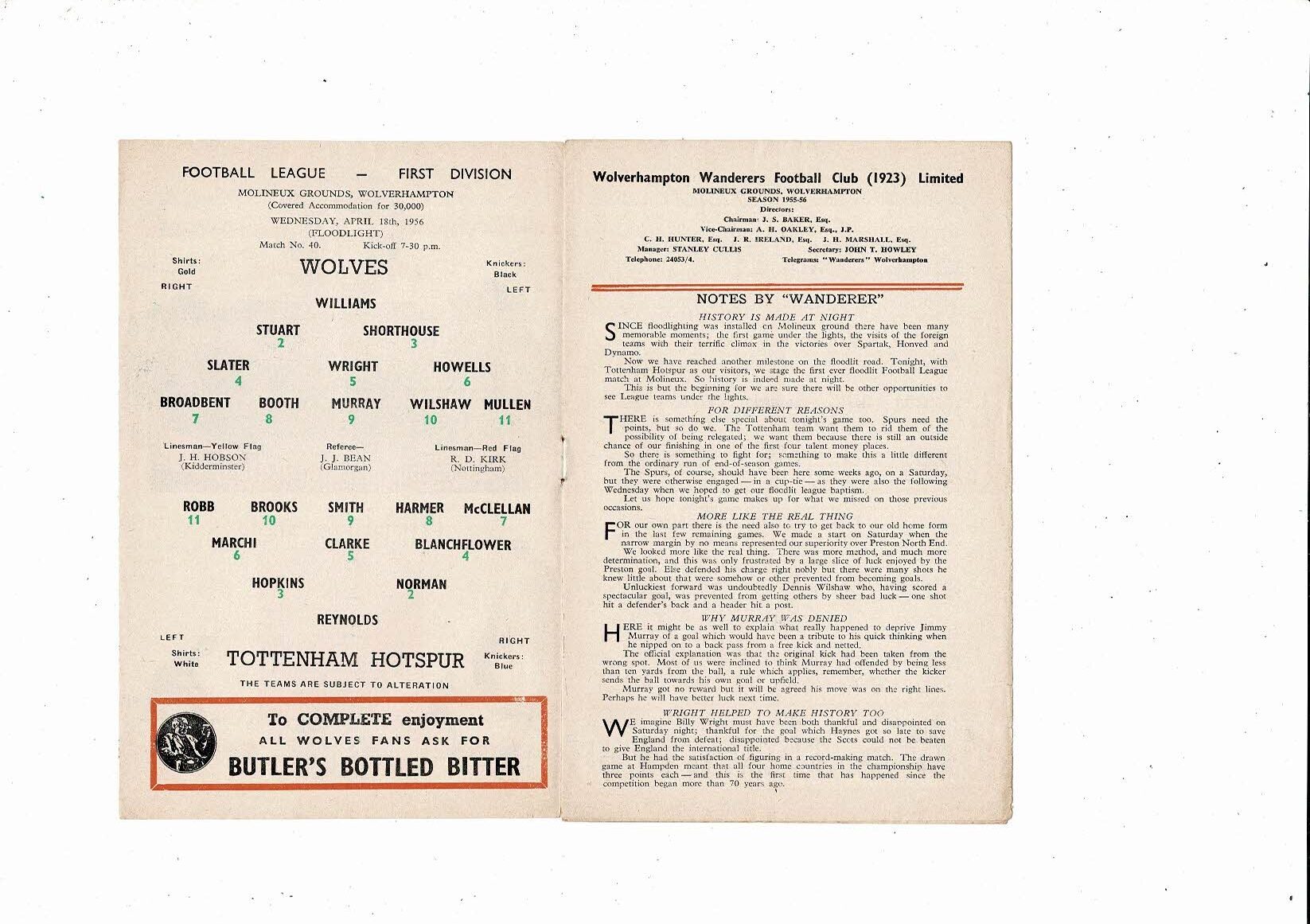 1955/56 Wolves v Tottenham Hotspur Football Programme