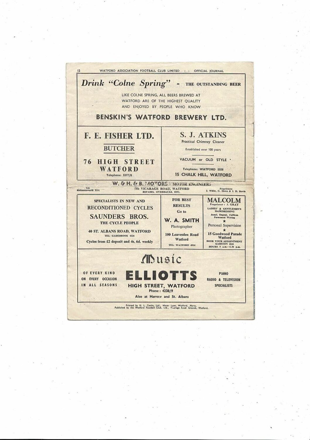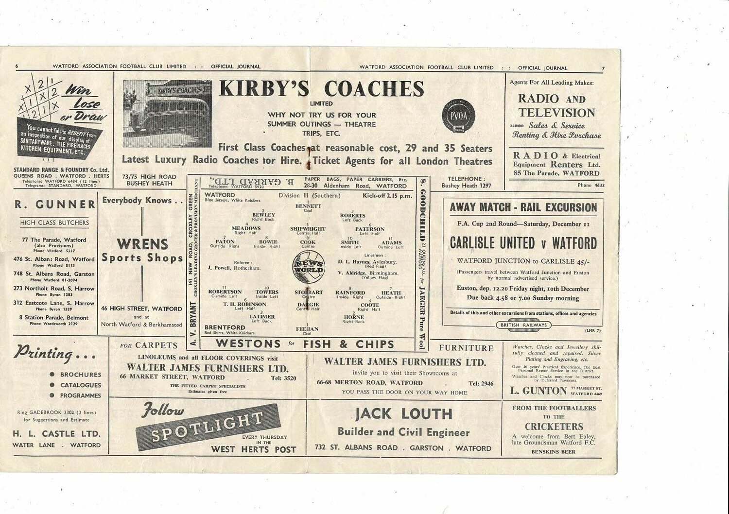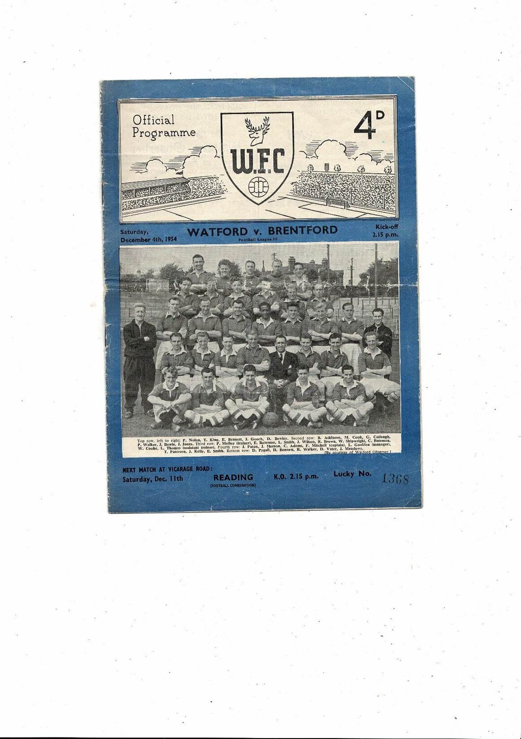 1954/55 Watford v Brentford Football Programme