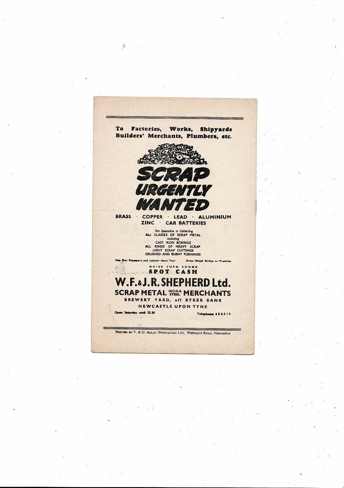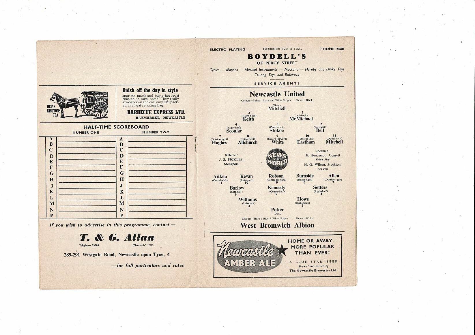 1959/60 Newcastle United v West Bromwich Albion Football Programme