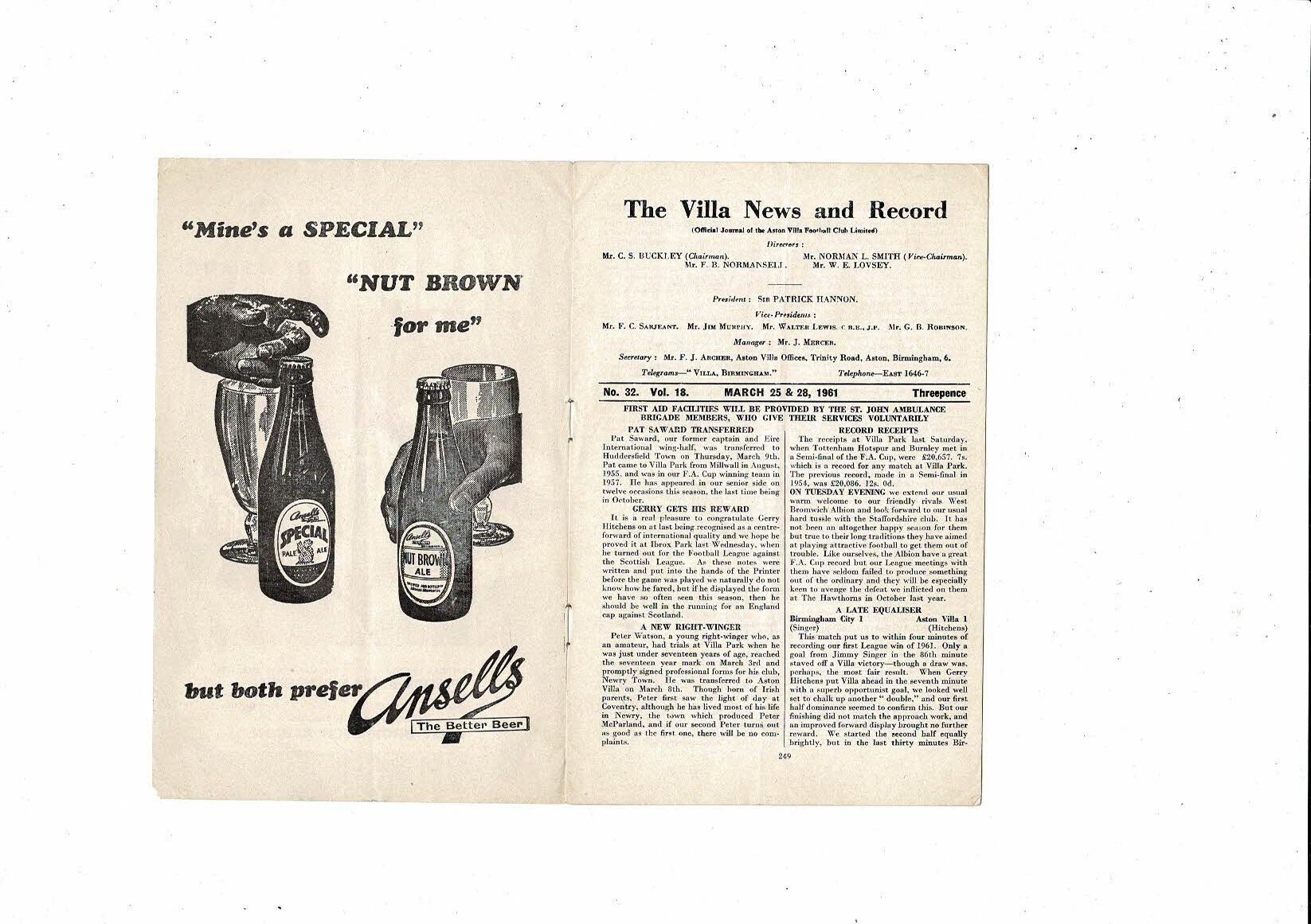 1960/61 Aston Villa v West Bromwich Albion & Preston Reserves Double Football Programme