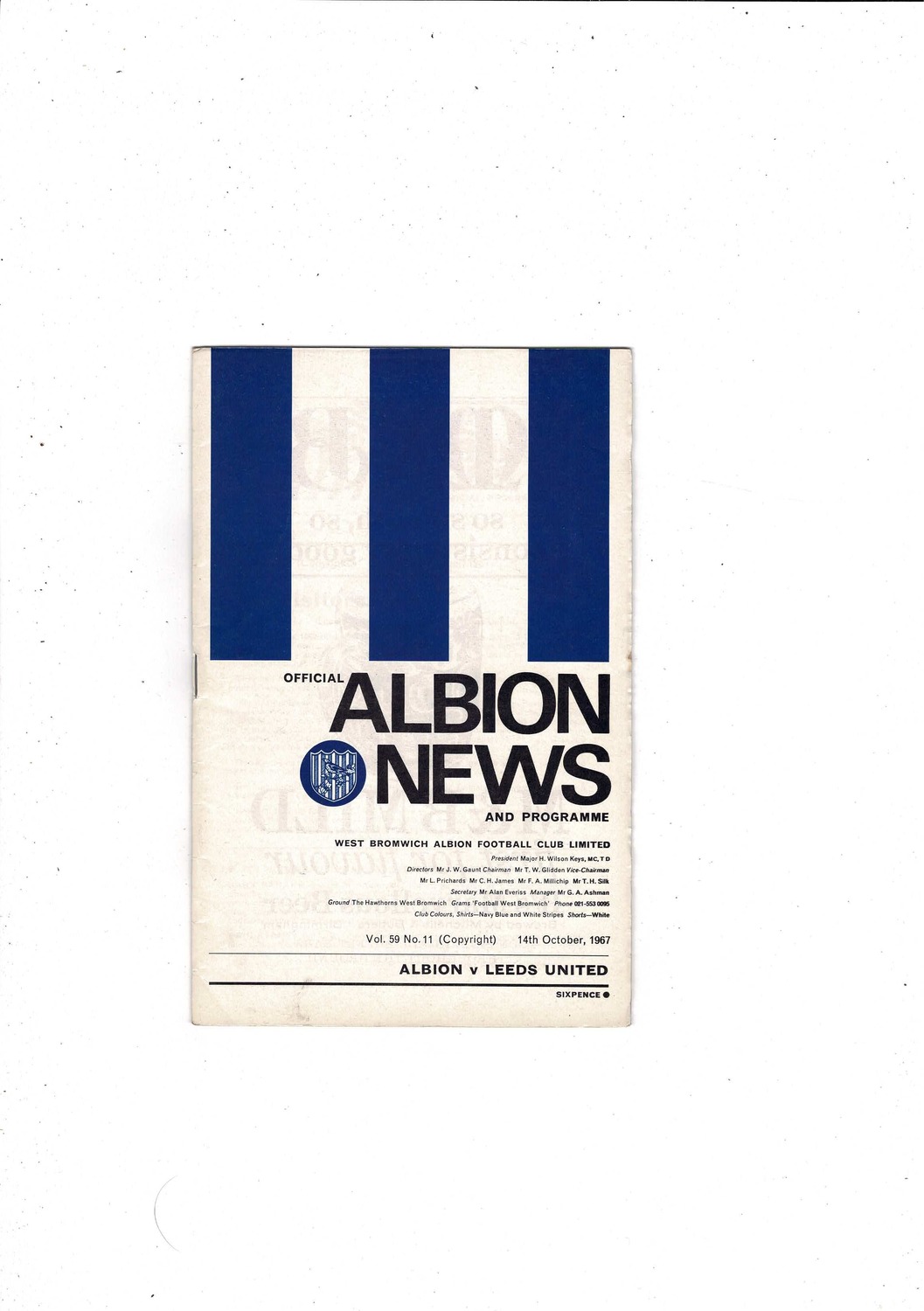 1967/68 West Bromwich Albion v Leeds United Football Programme + League Review