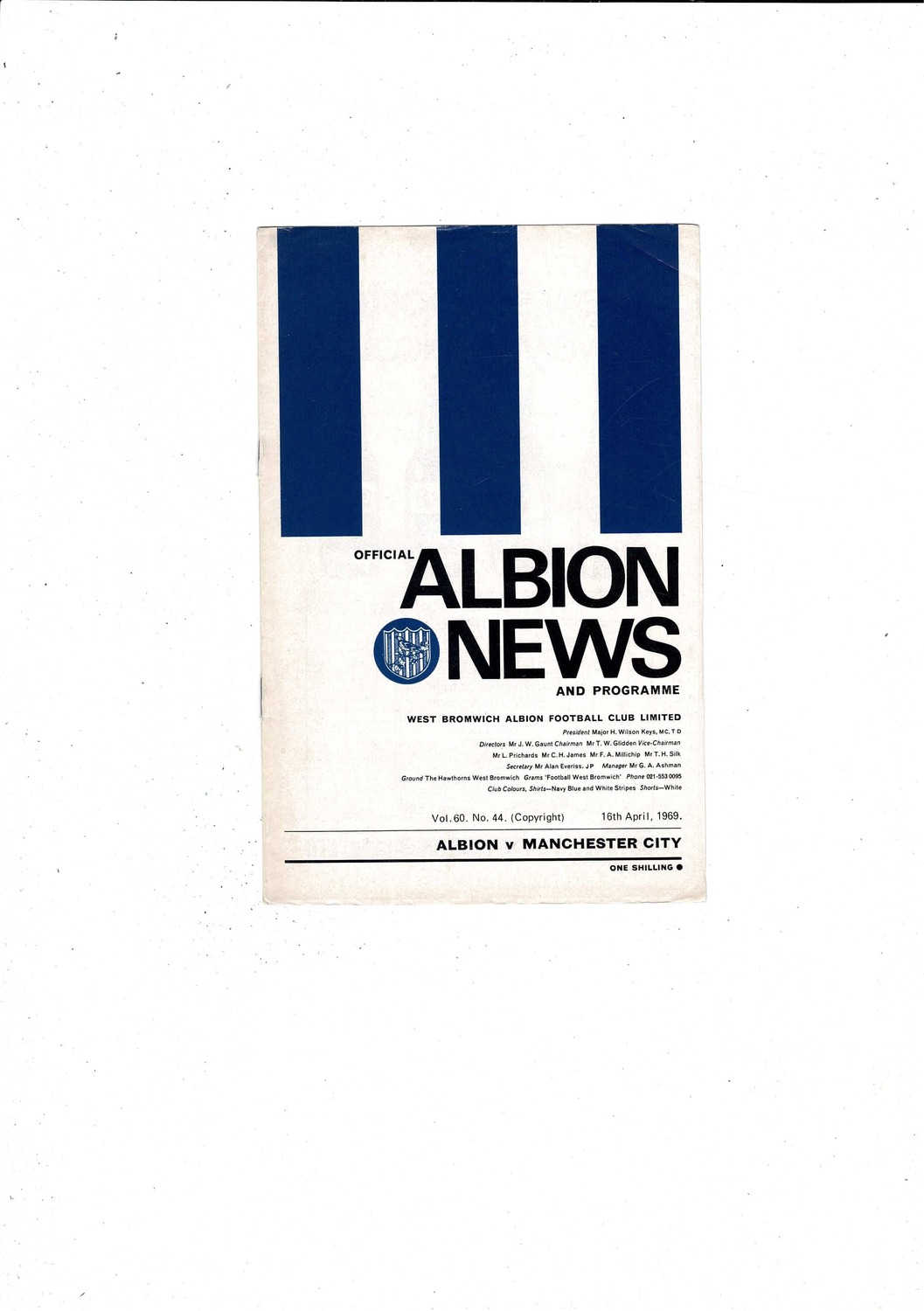 1968/69 West Bromwich Albion v Manchester City Football Programme