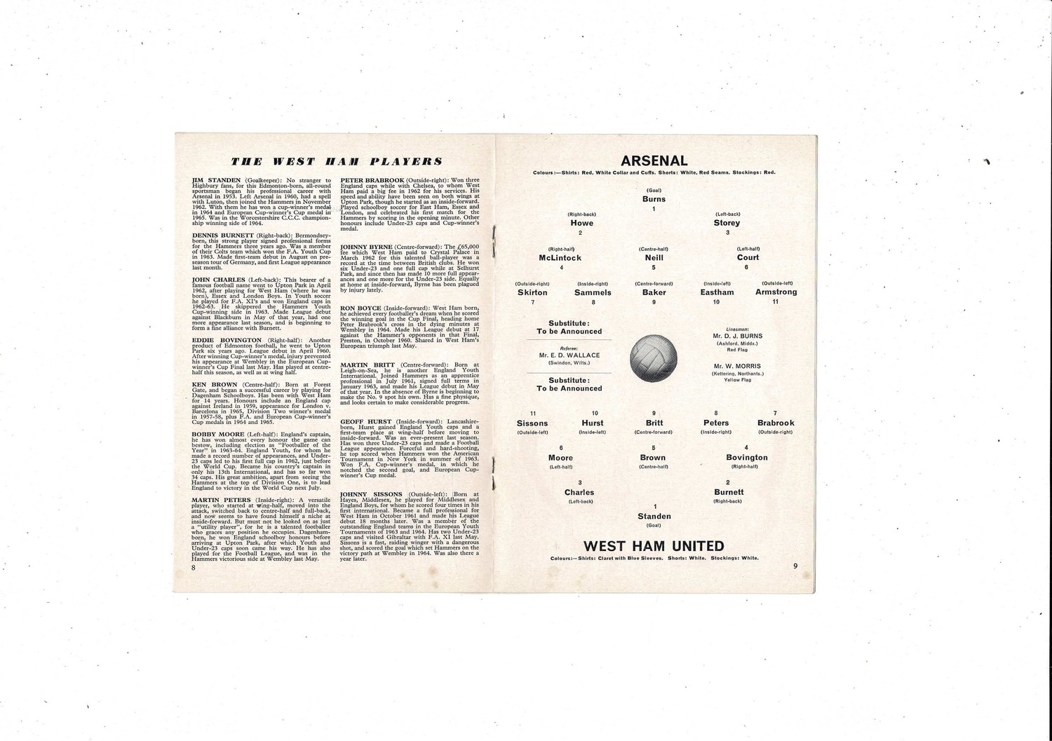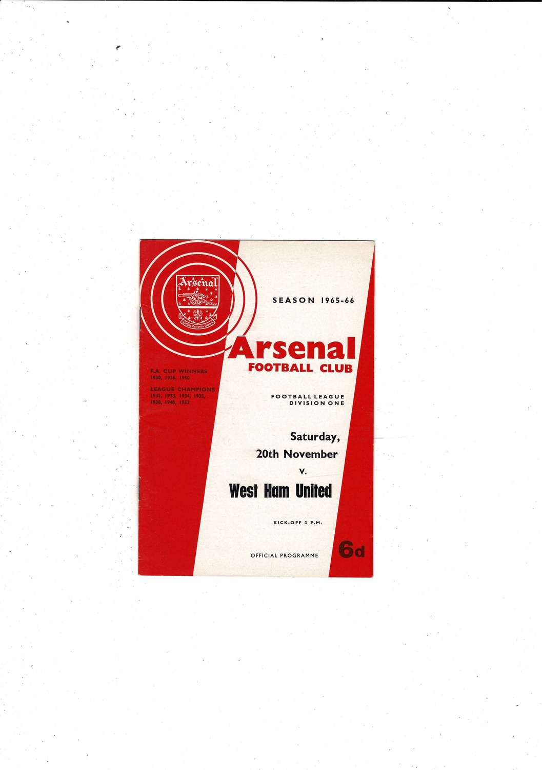 1965/66 Arsenal v West Ham United Football Programme