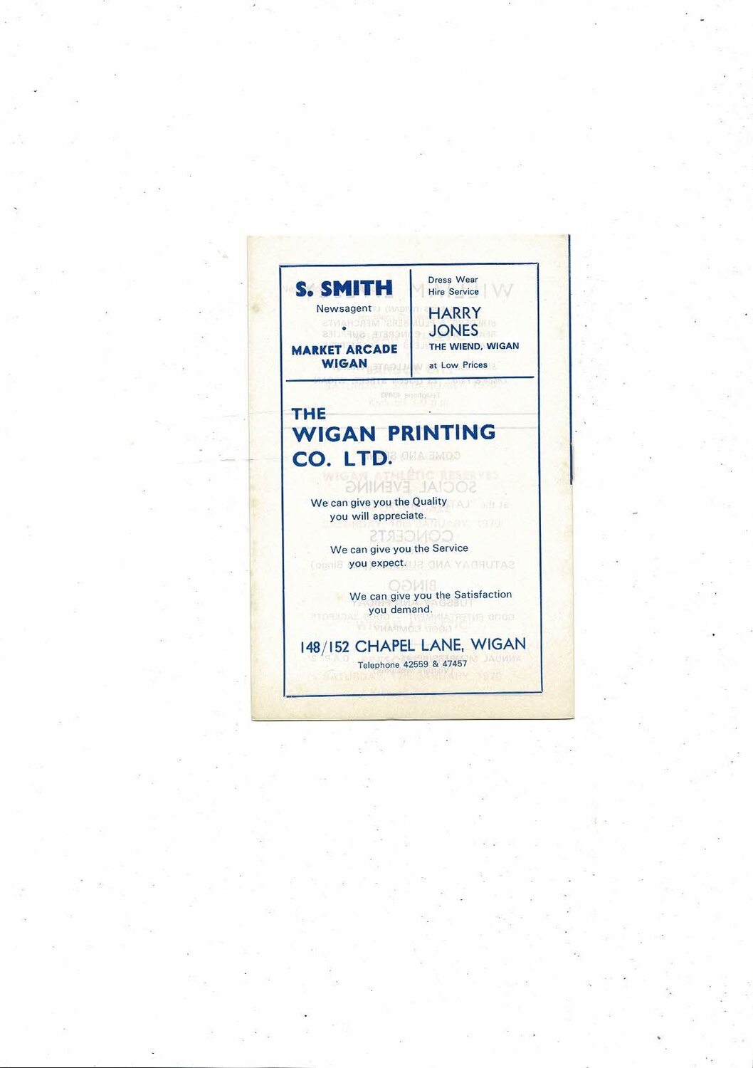 1969/70 Wigan Athletic v Great Harwood Football Programme 27th December 1969