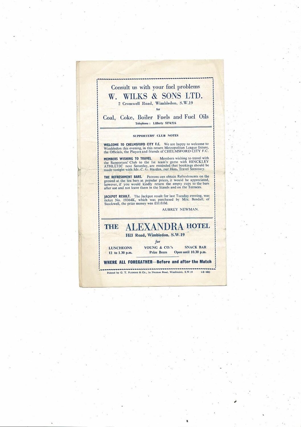 This original Football Programme is creased also has a fold with some minor staining. No handwriting. Please see scans