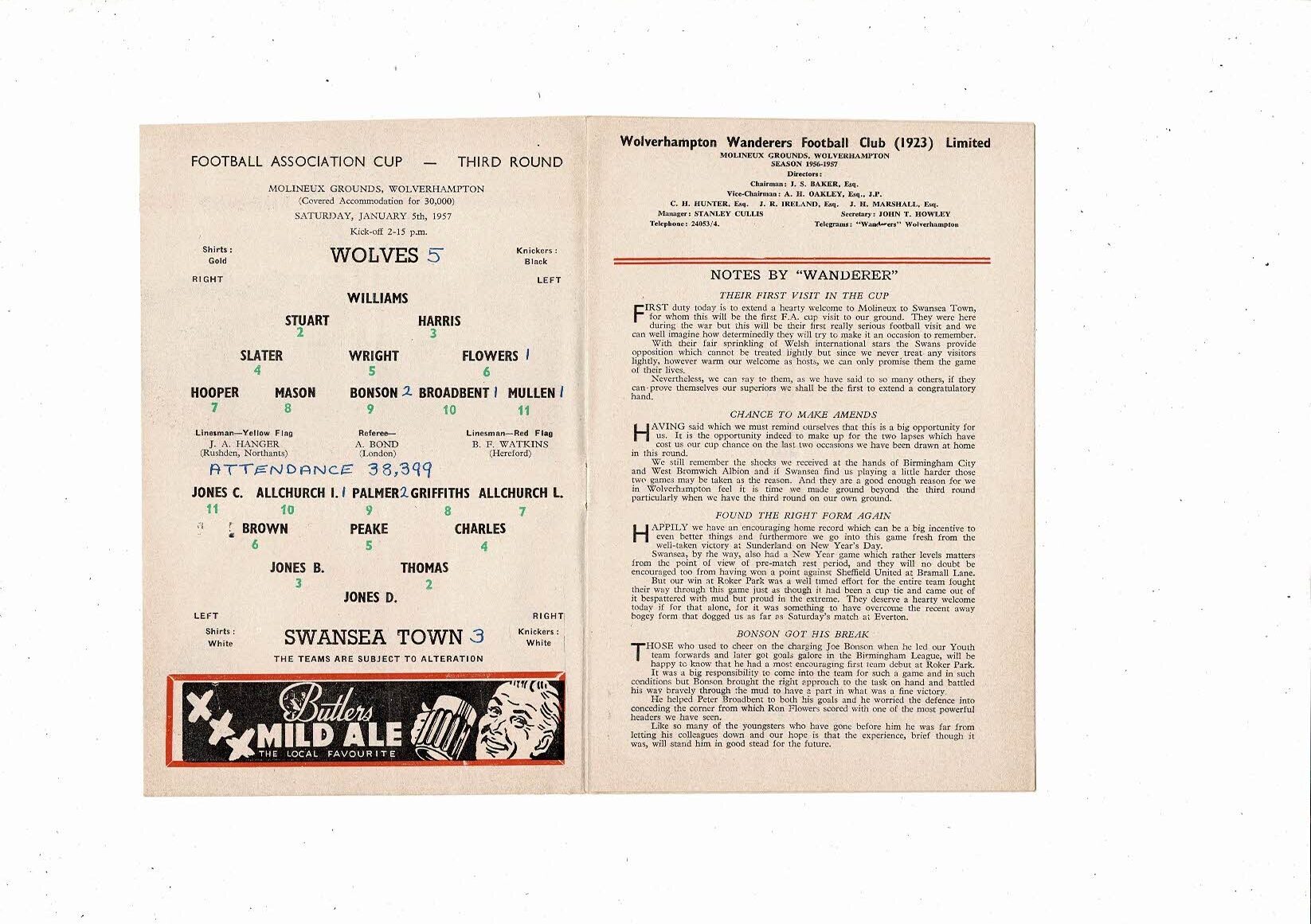 1956/57 Wolves v Swansea FA Cup Football Programme