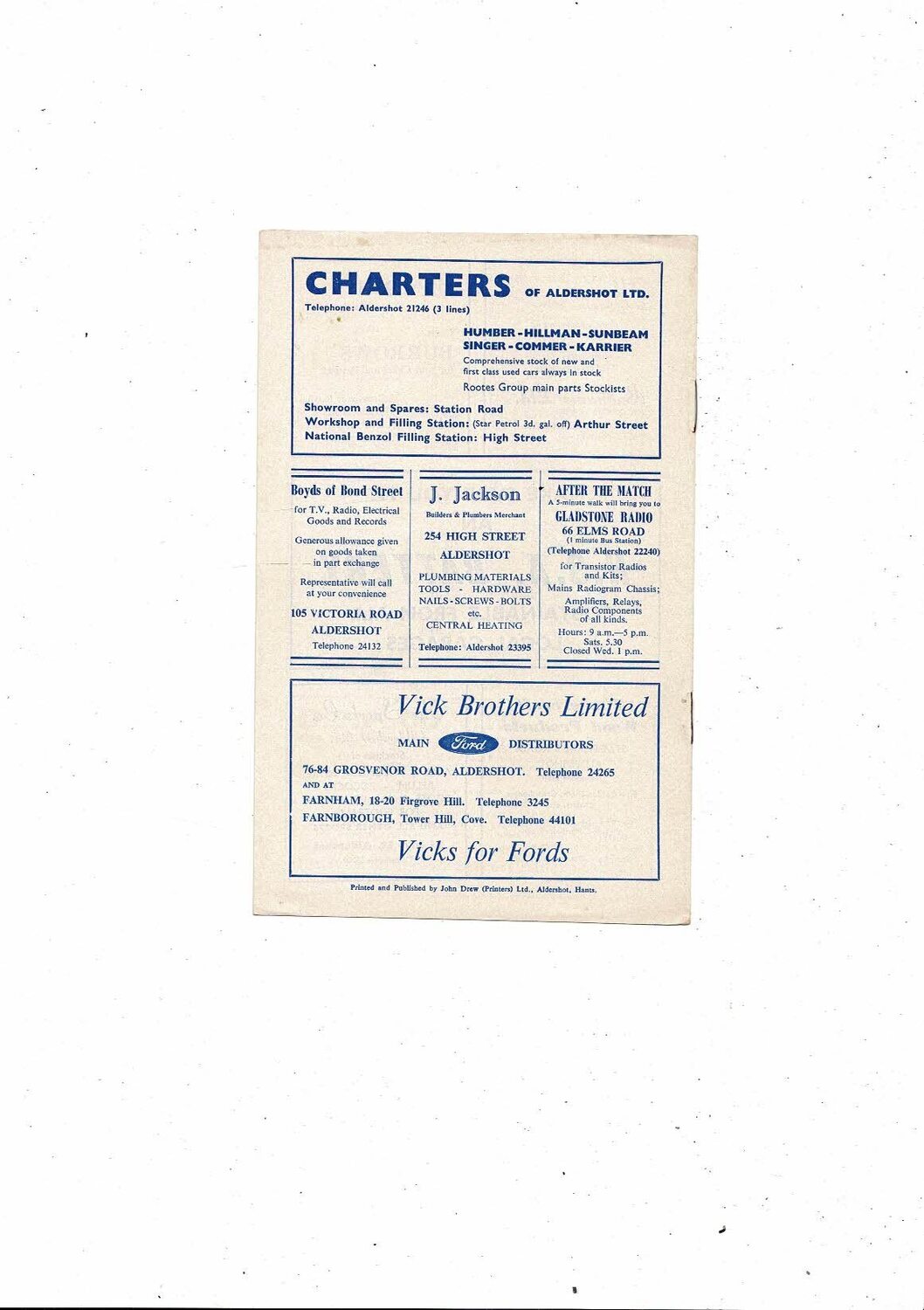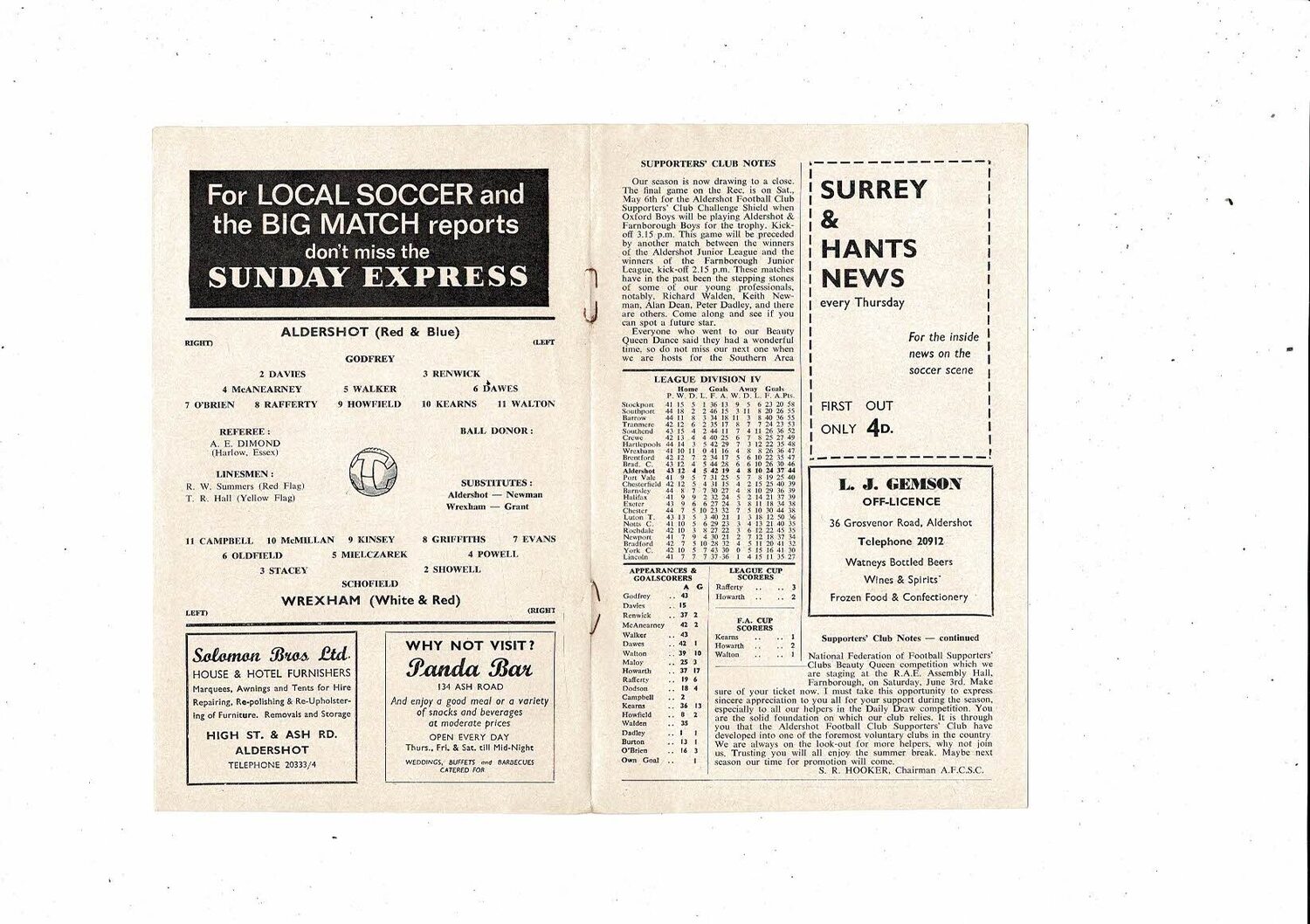 1966/67 Aldershot v Wrexham Football Programme
