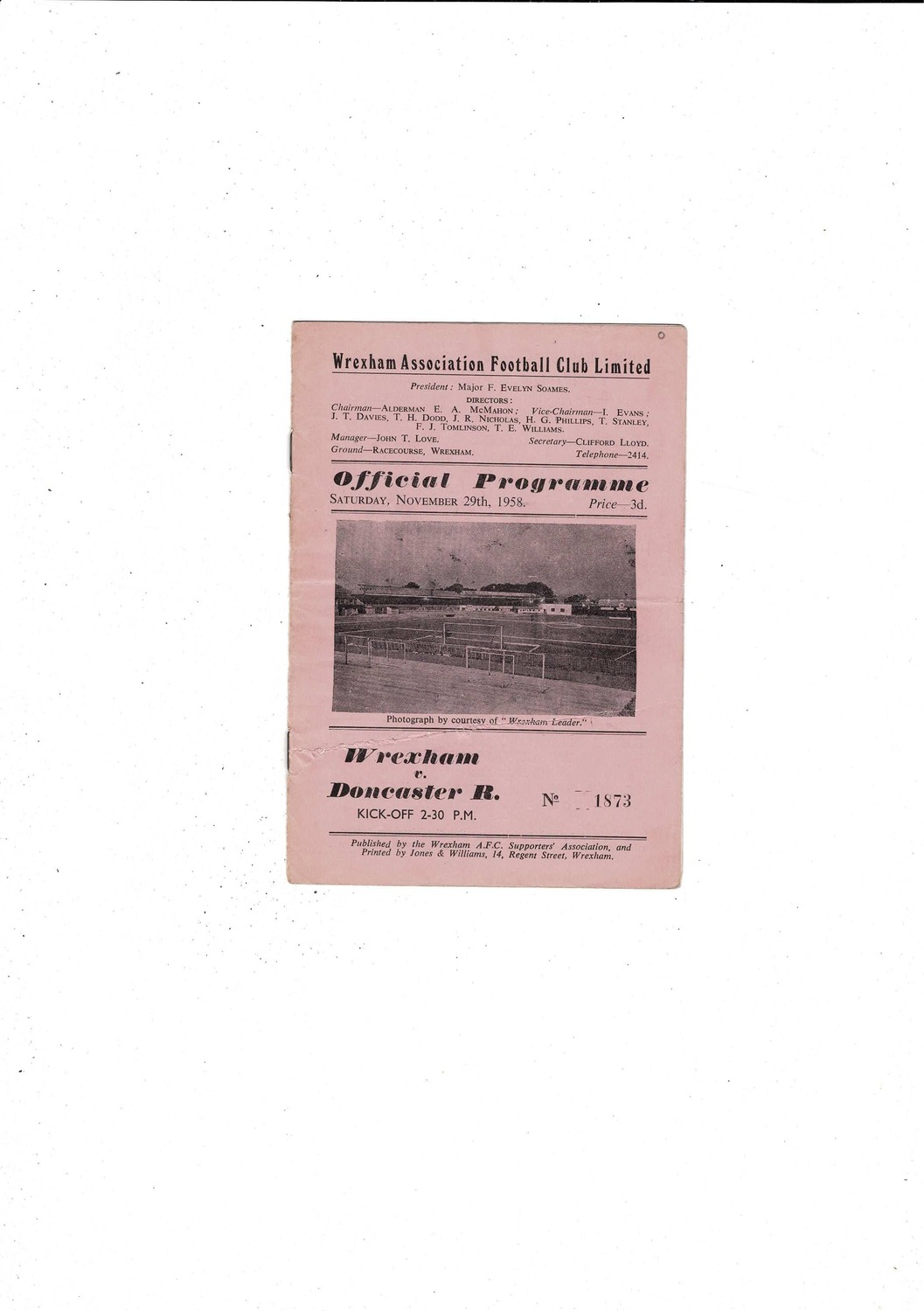 1958/59 Wrexham v Doncaster Rovers Football Programme