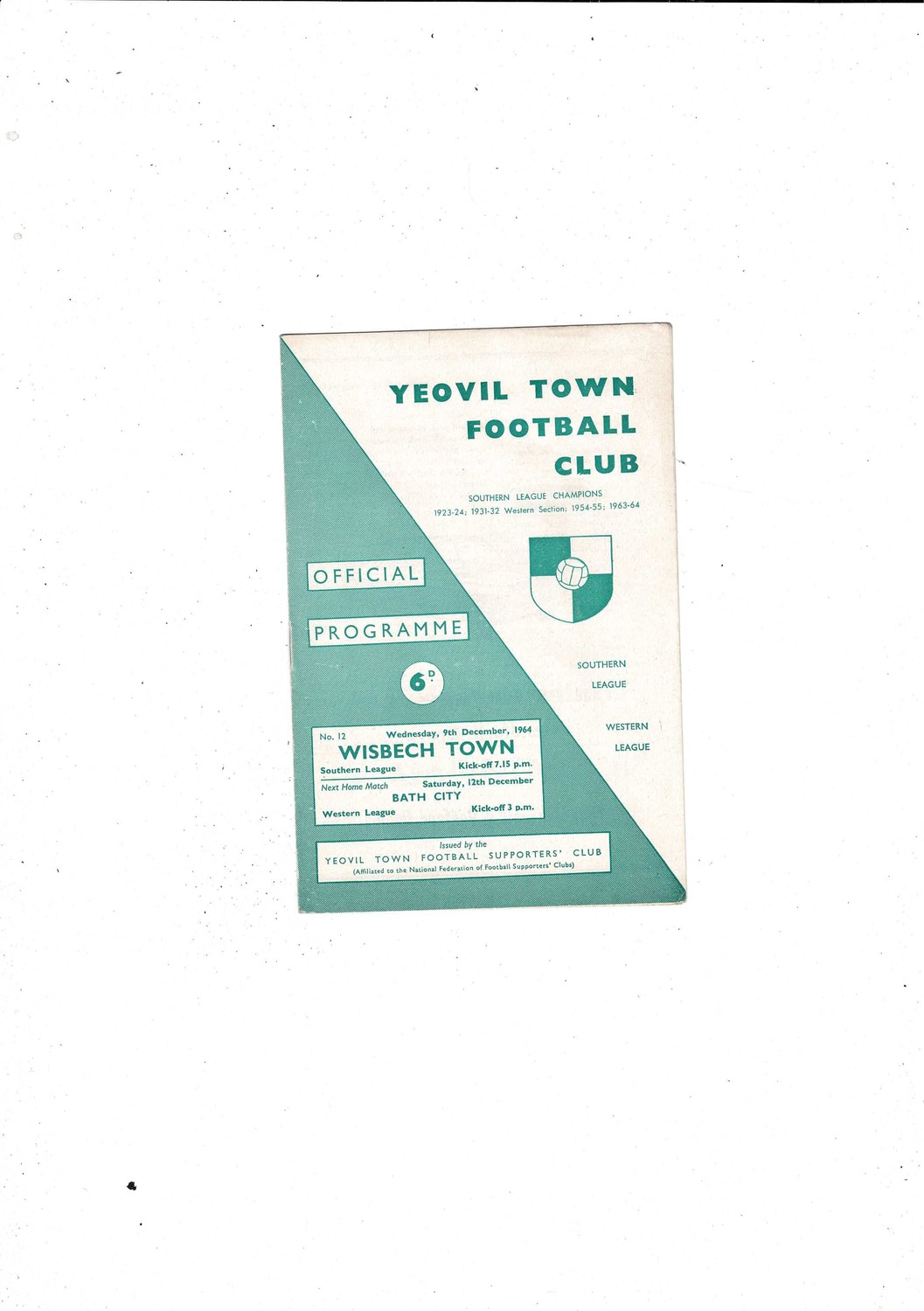 1964/65 Yeovil Town v Wisbech Town Football Programme
