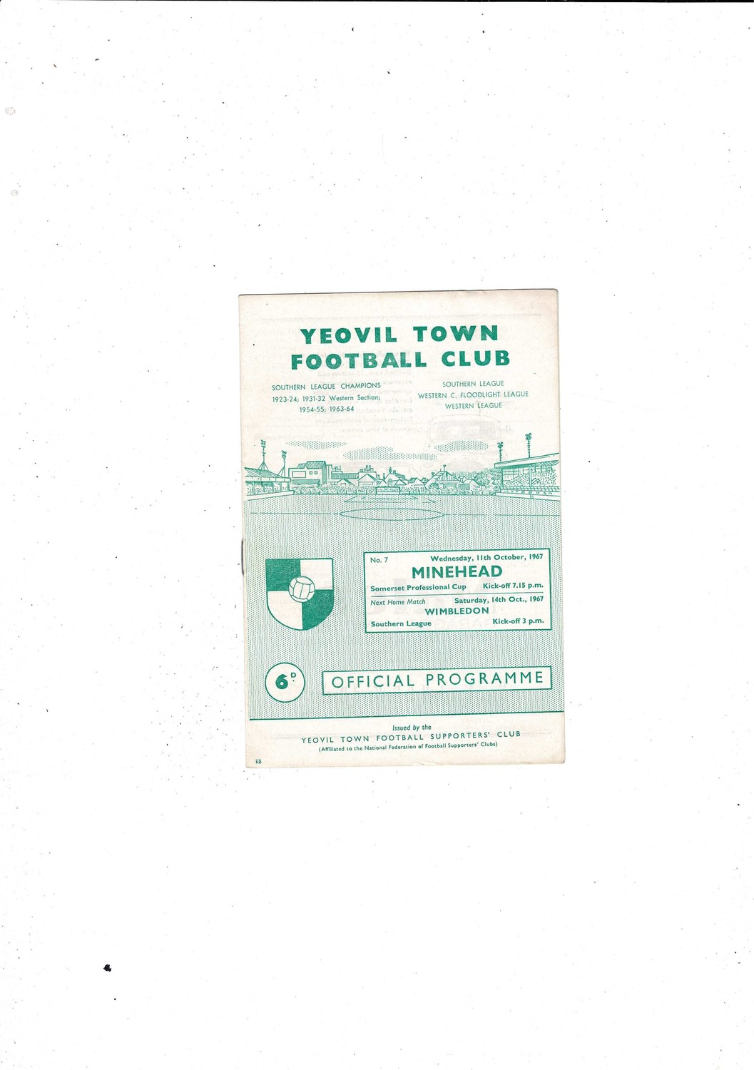 1967/68 Yeovil Town v Minehead Somerset Professional Cup Football Programme