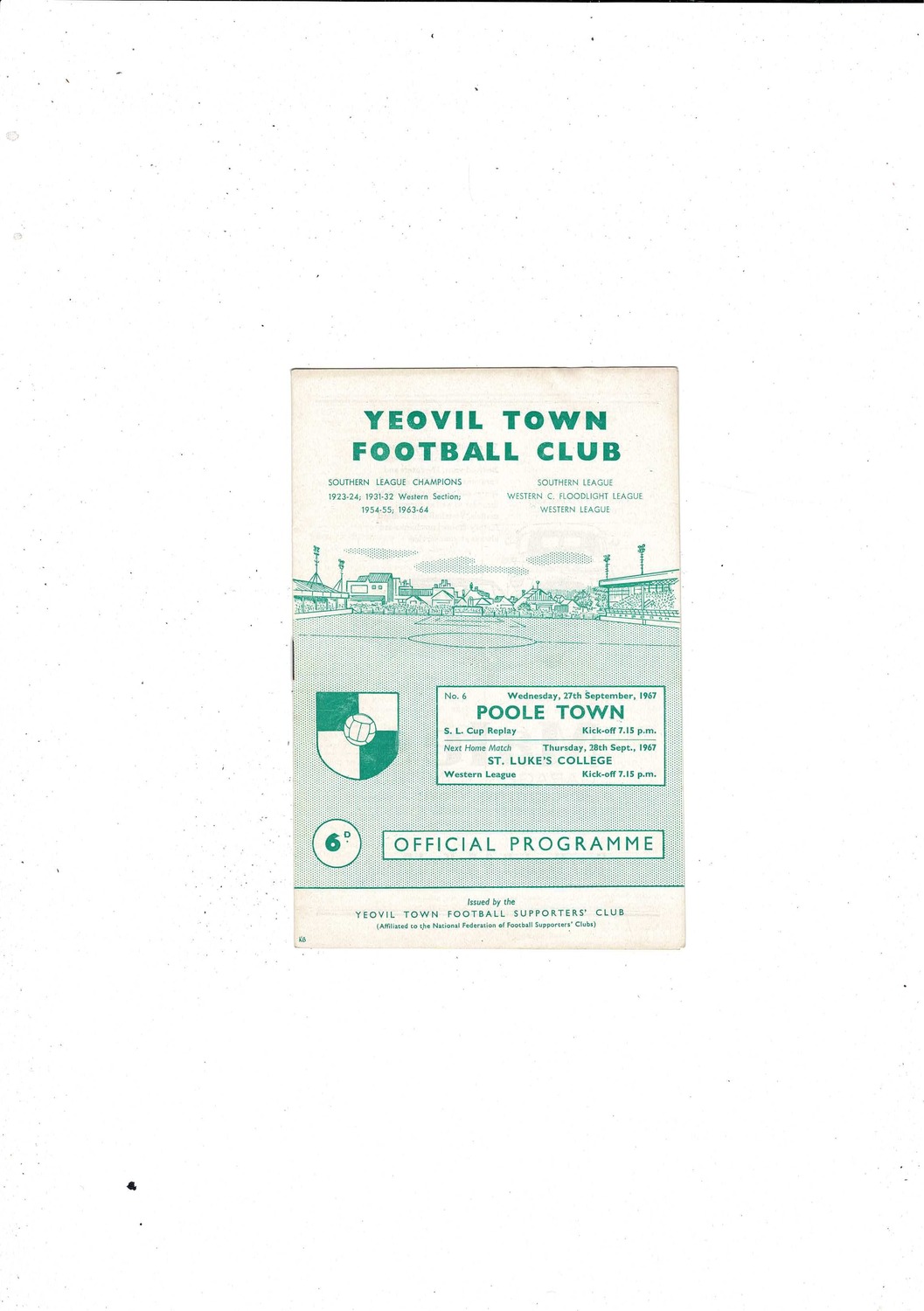 1967/68 Yeovil Town v Poole Town Southern League Cup Replay Football Programme