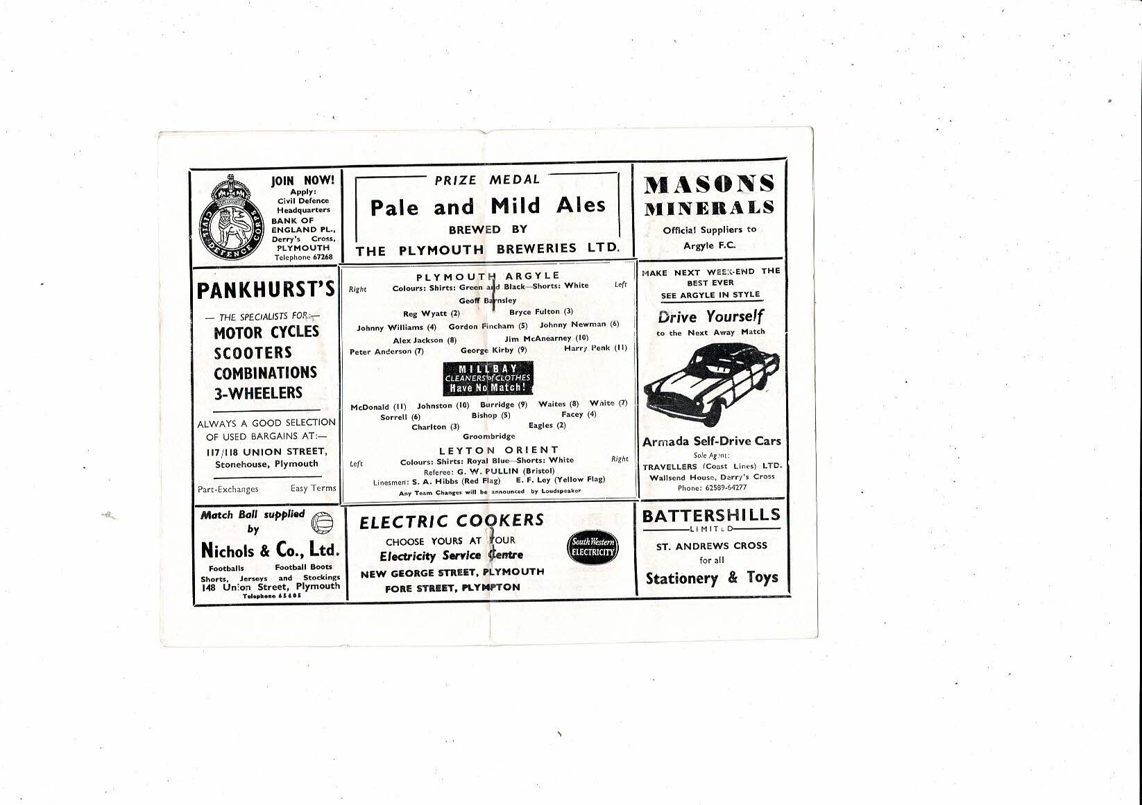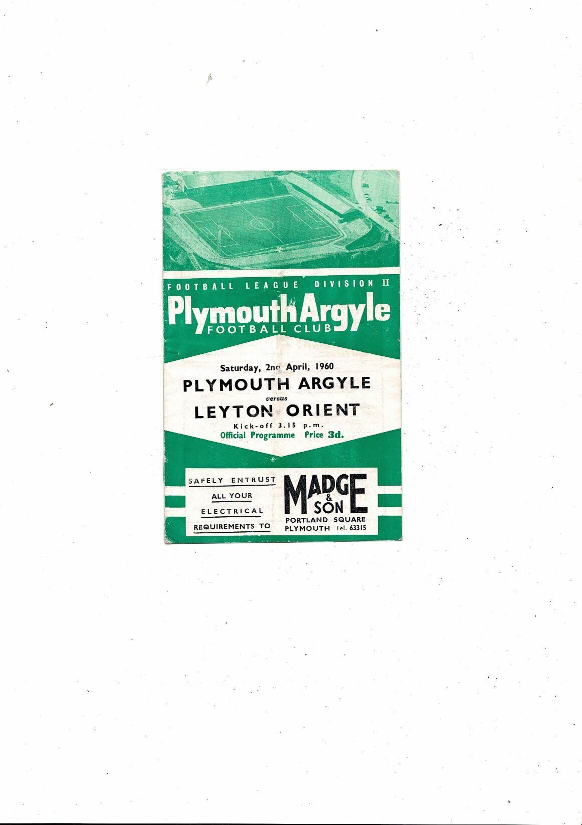 1959/60 Plymouth Argyle v Leyton Orient Football Programme