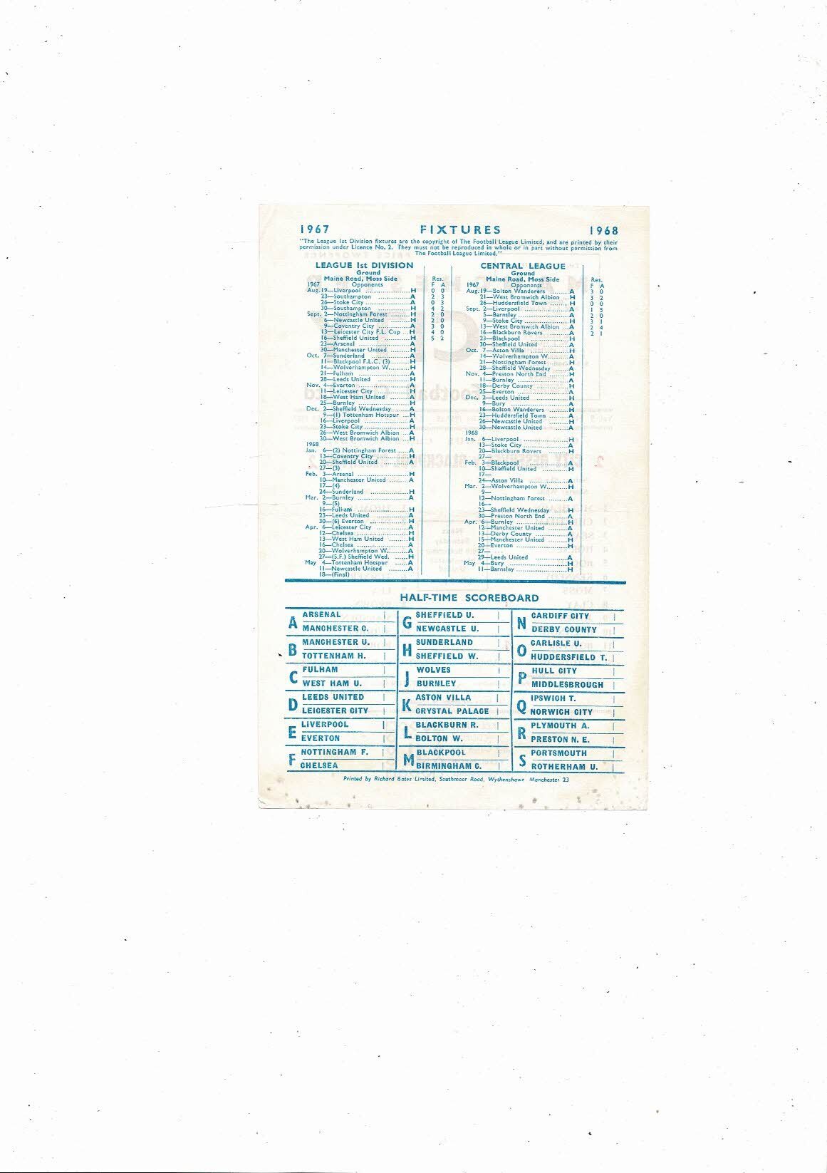 This Original Single Sheet Football Programme is creased also has a fold with some staining, tiny nic on edge, score & scorers noted. Also has Token No 11. Please see scans.