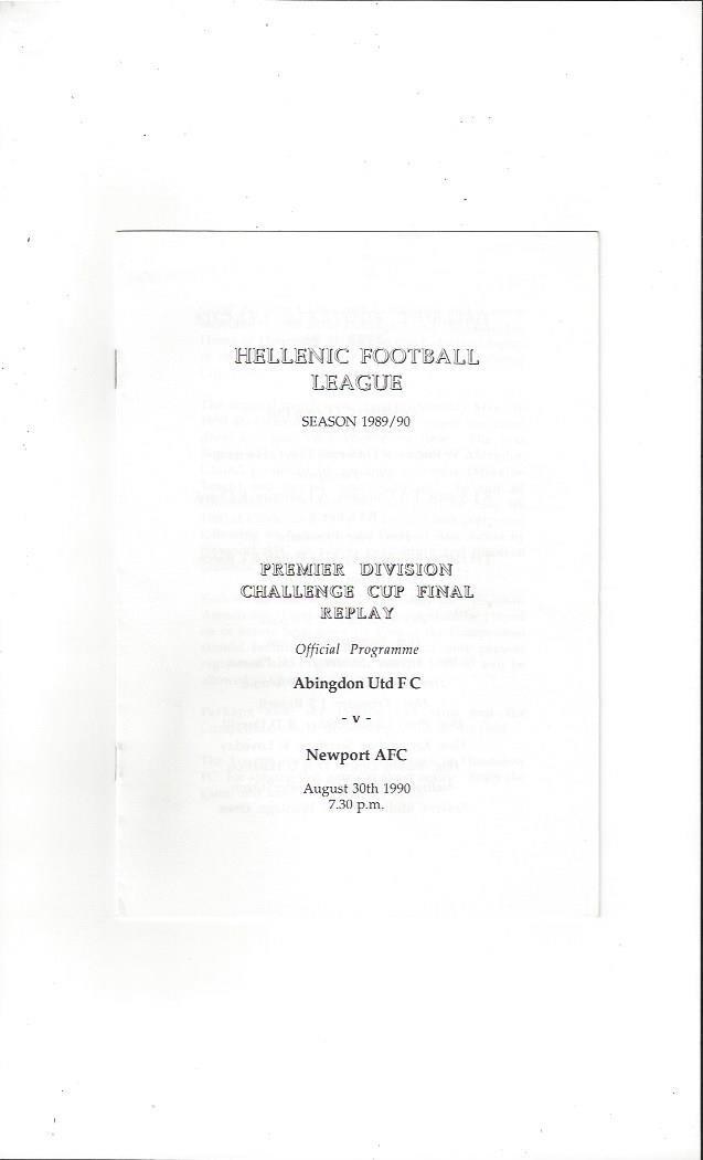 1990/91 Abingdon United v Newport AFC Premier Division Cup Final Football Programme