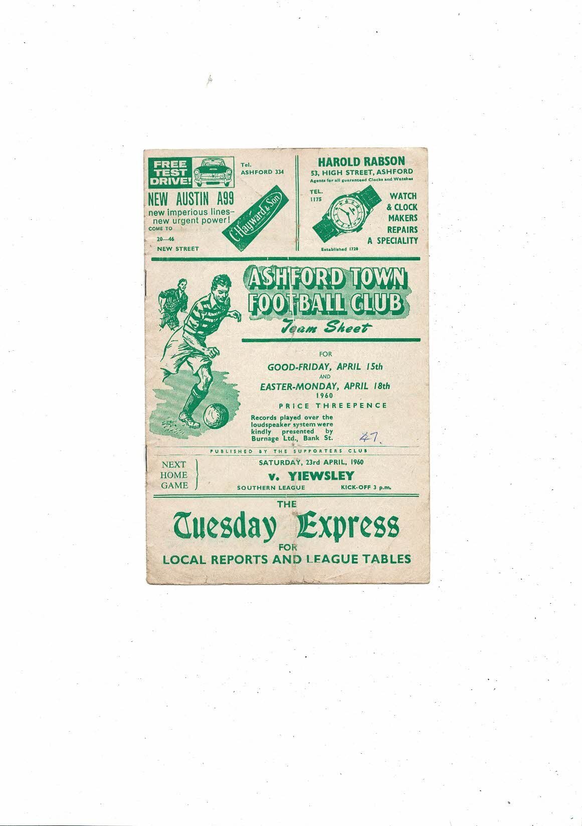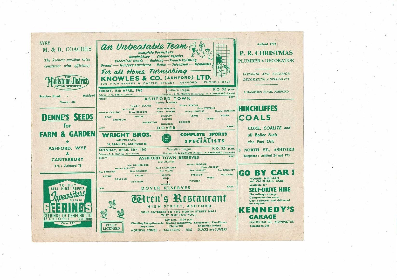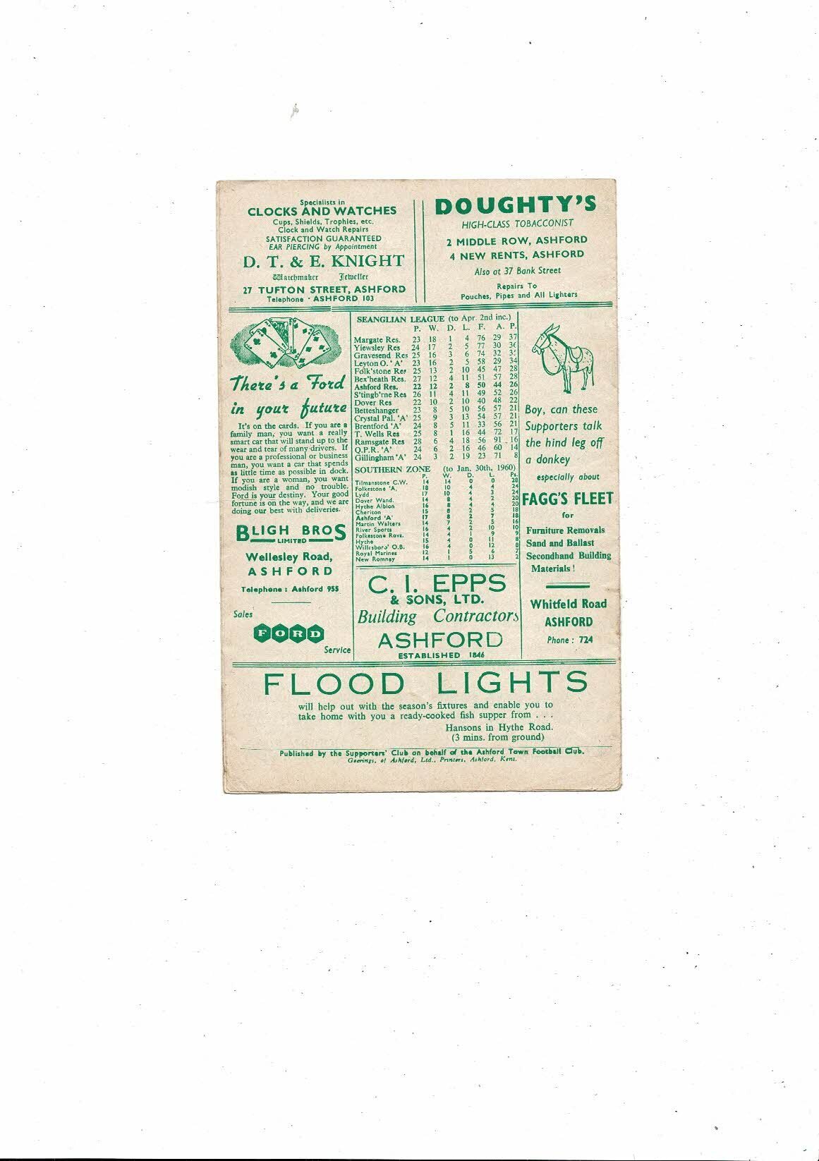 1959/60 Ashford Town v Dover Reserves Southern League Football Programme