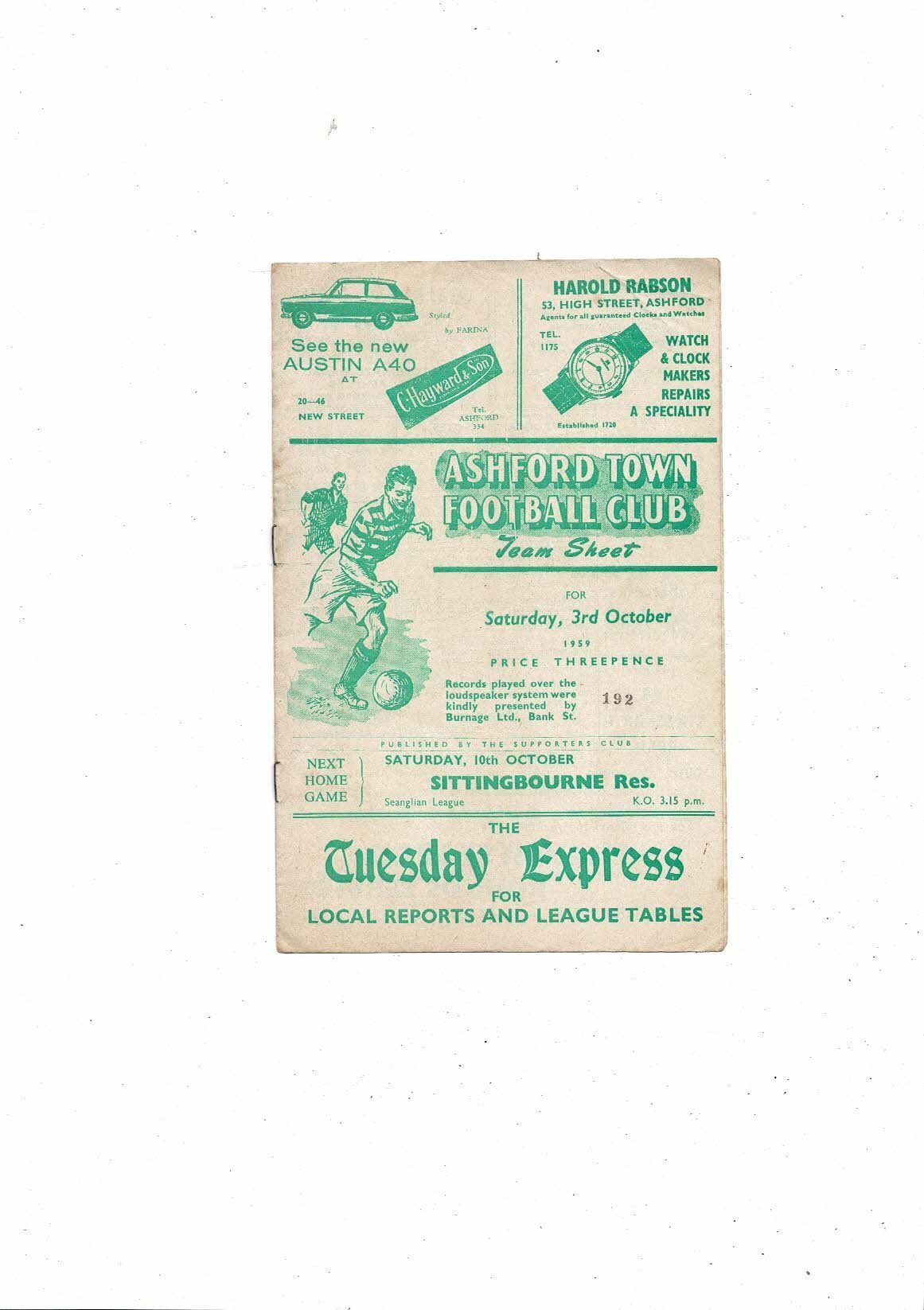 1959/60 Ashford Town v Folkestone Town FA Cup Football Programme