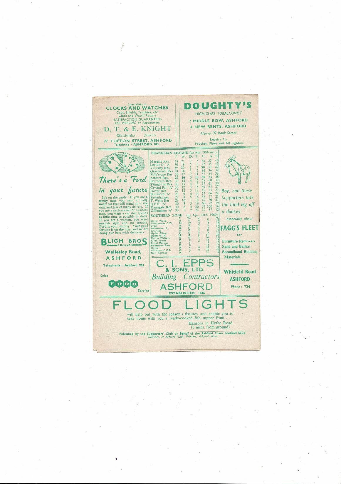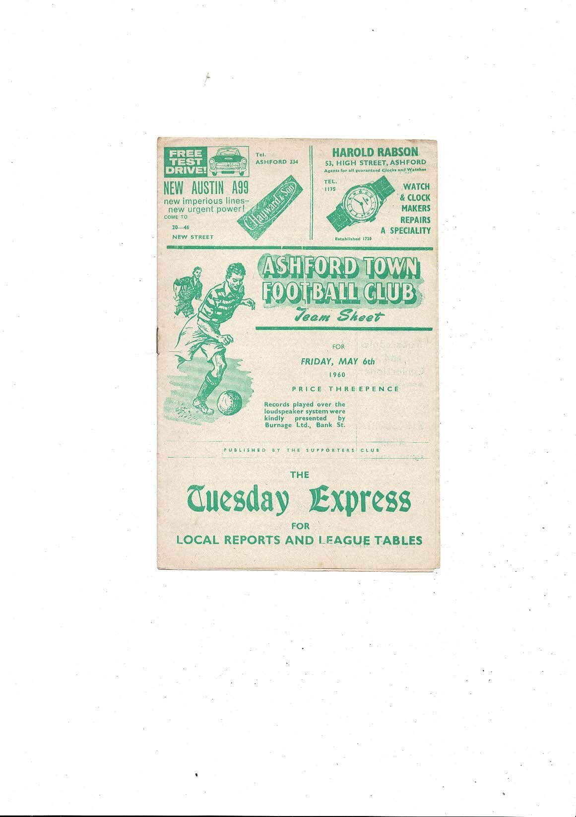 1959/60 Ashford Town v Trowbridge Southern League Football Programme
