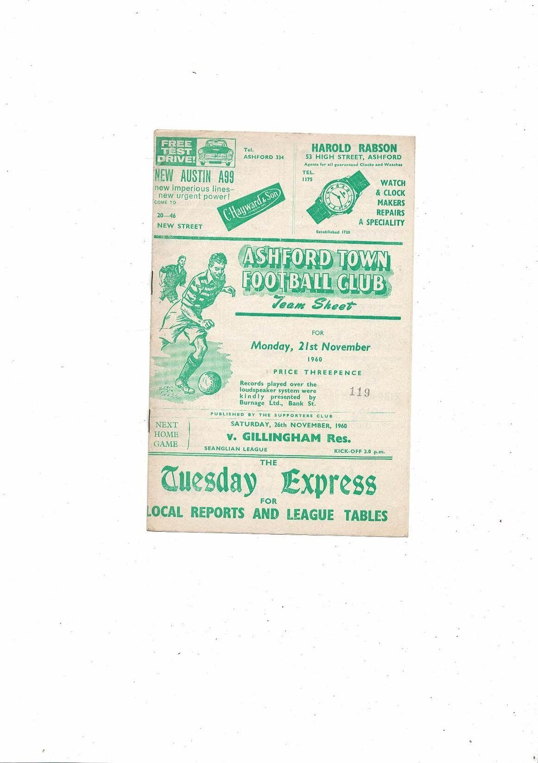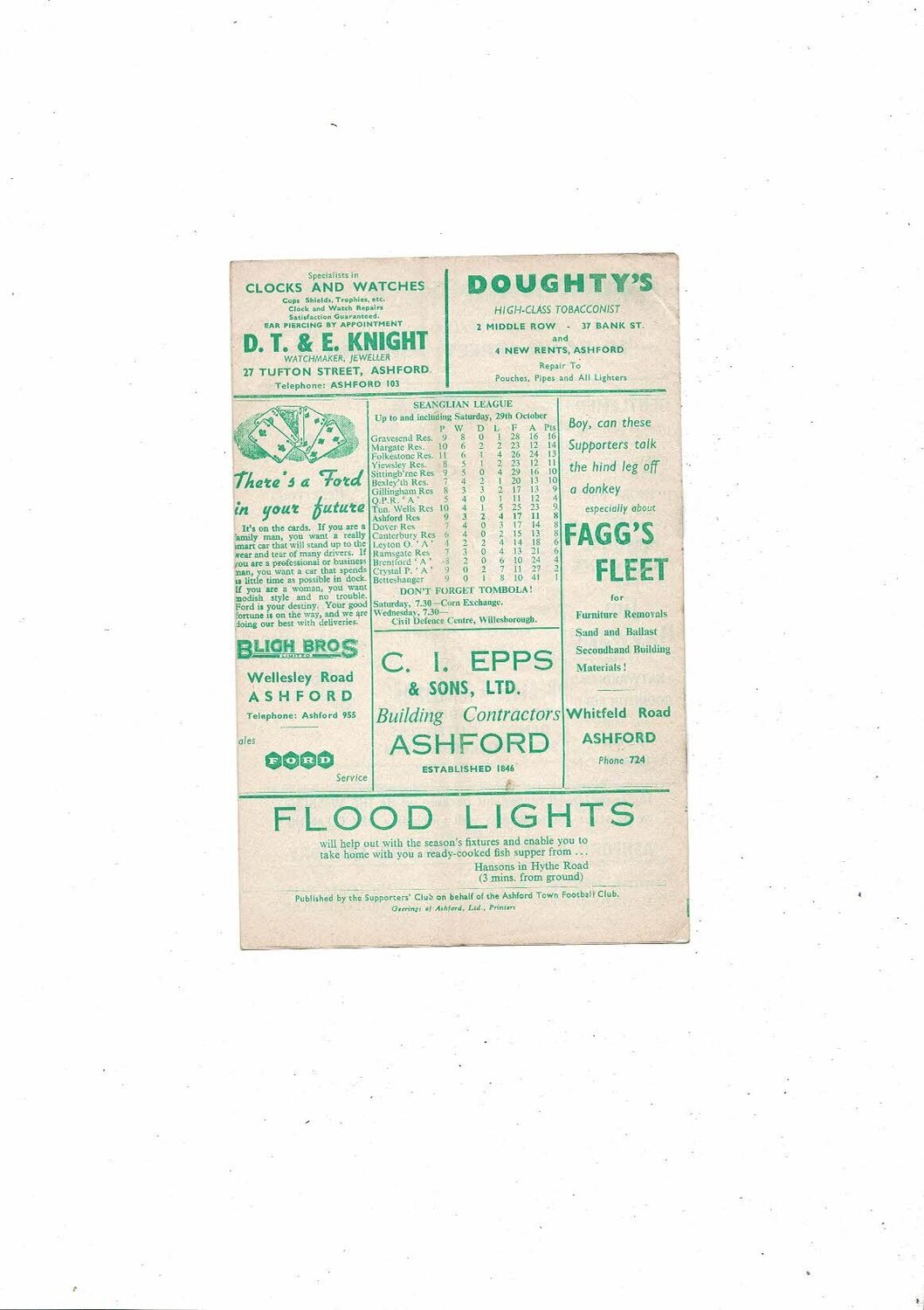 1960/61 Ashford Town (Kent) v Folkestone Town Kent Cup Football Programme