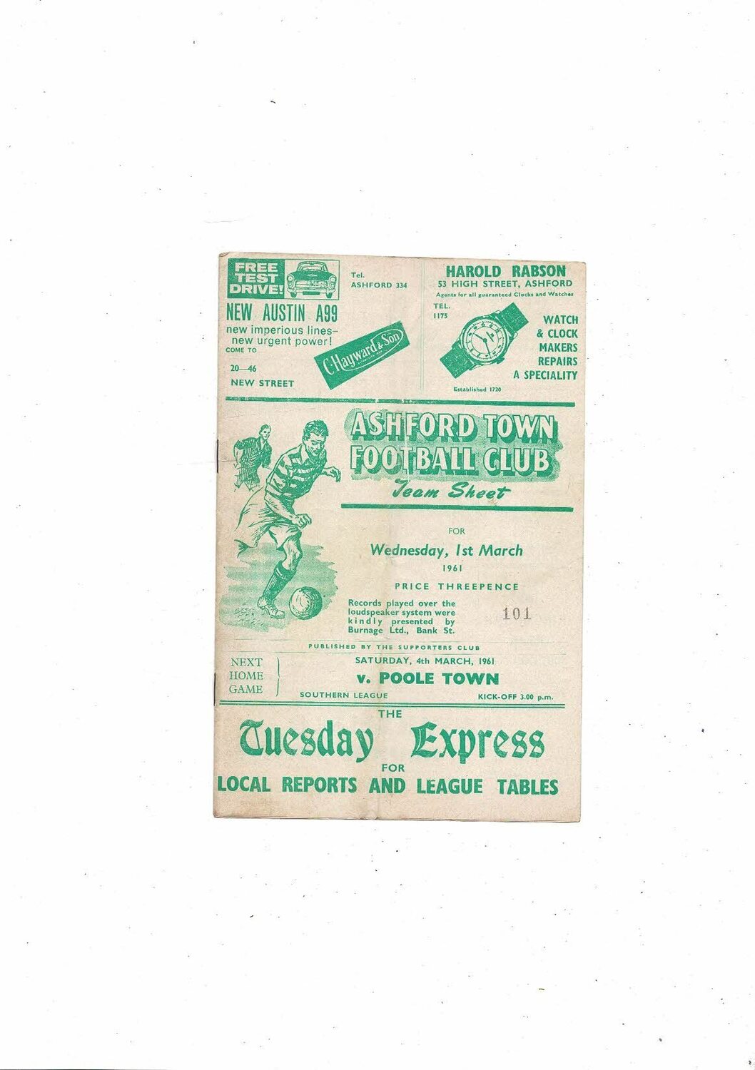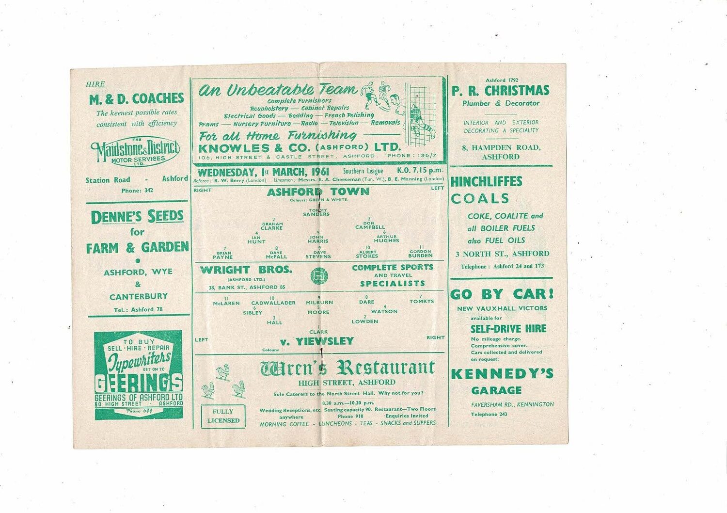 1960/61 Ashford Town (Kent) v Yiewsley Southern League Football Programme