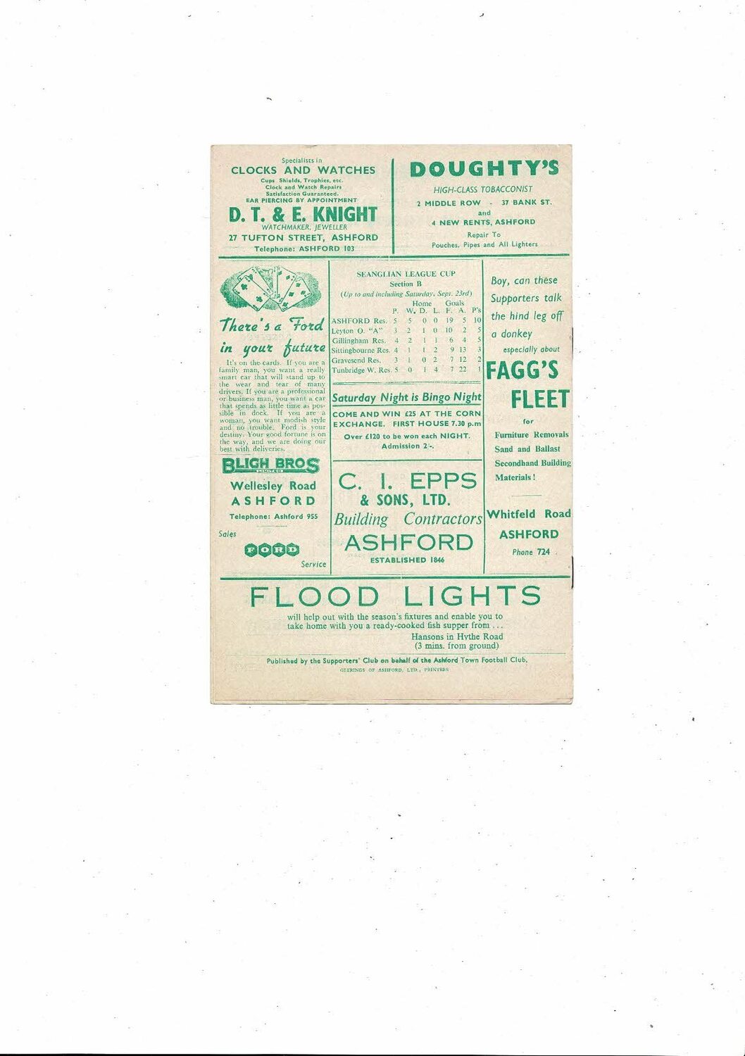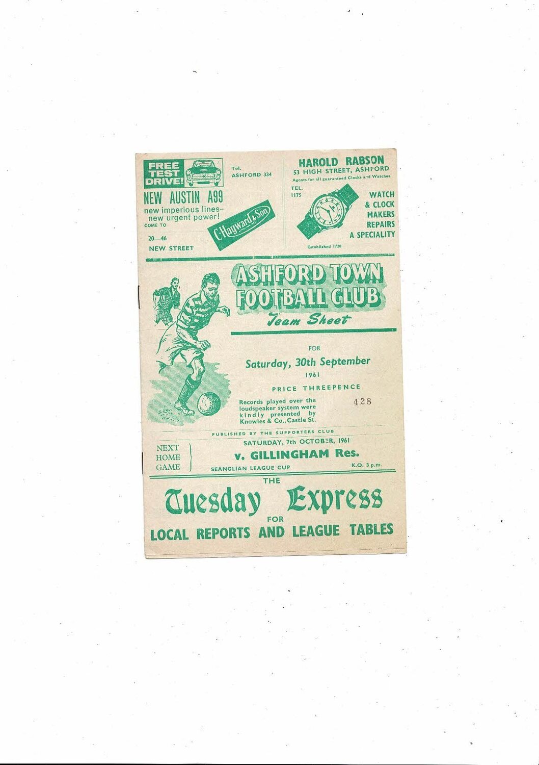 1961/62 Ashford Town (Kent) v Wisbech Town Southern League Football Programme