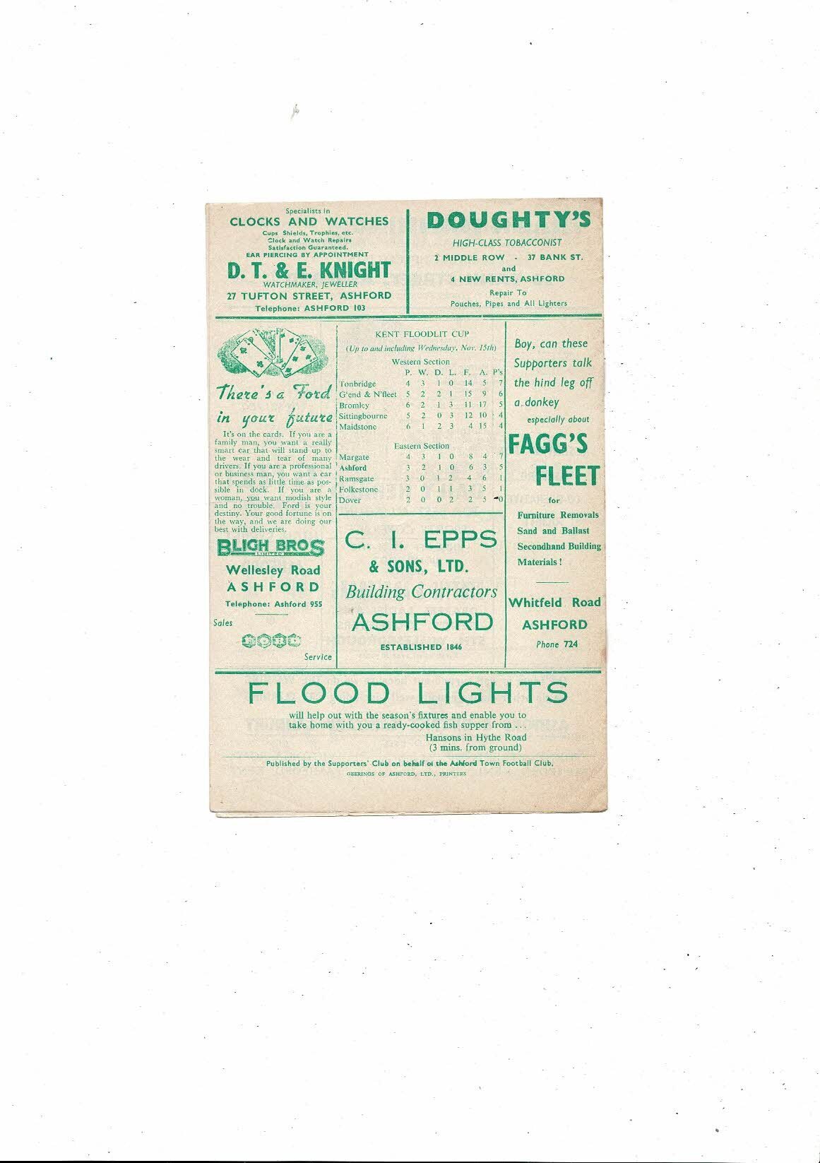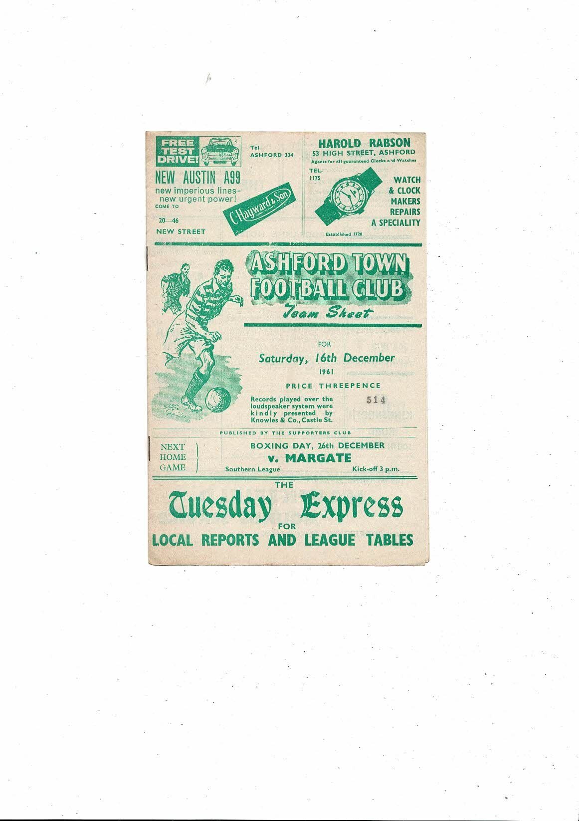 1961/62 Ashford Town v Canterbury Southern League Football Programme