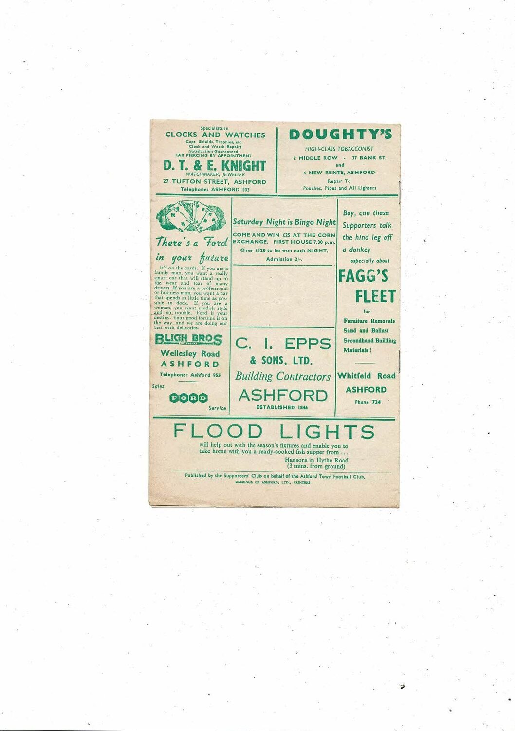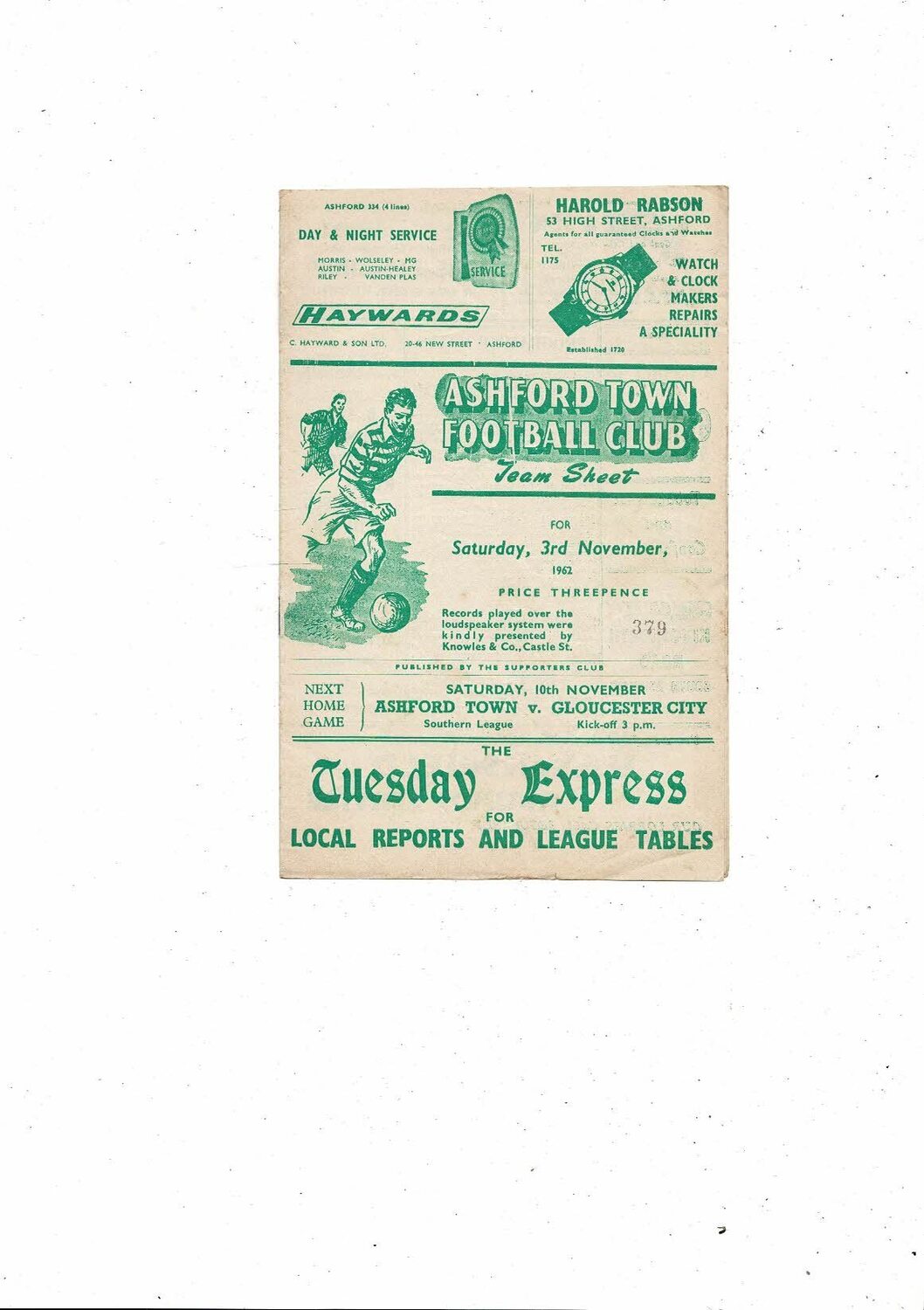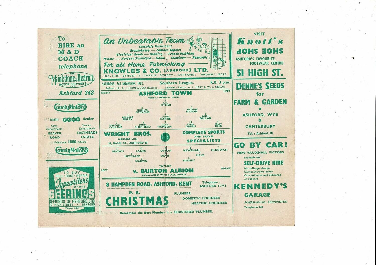 1962/63 Ashford Town (Kent) v Burton Albion Southern League Football Programme