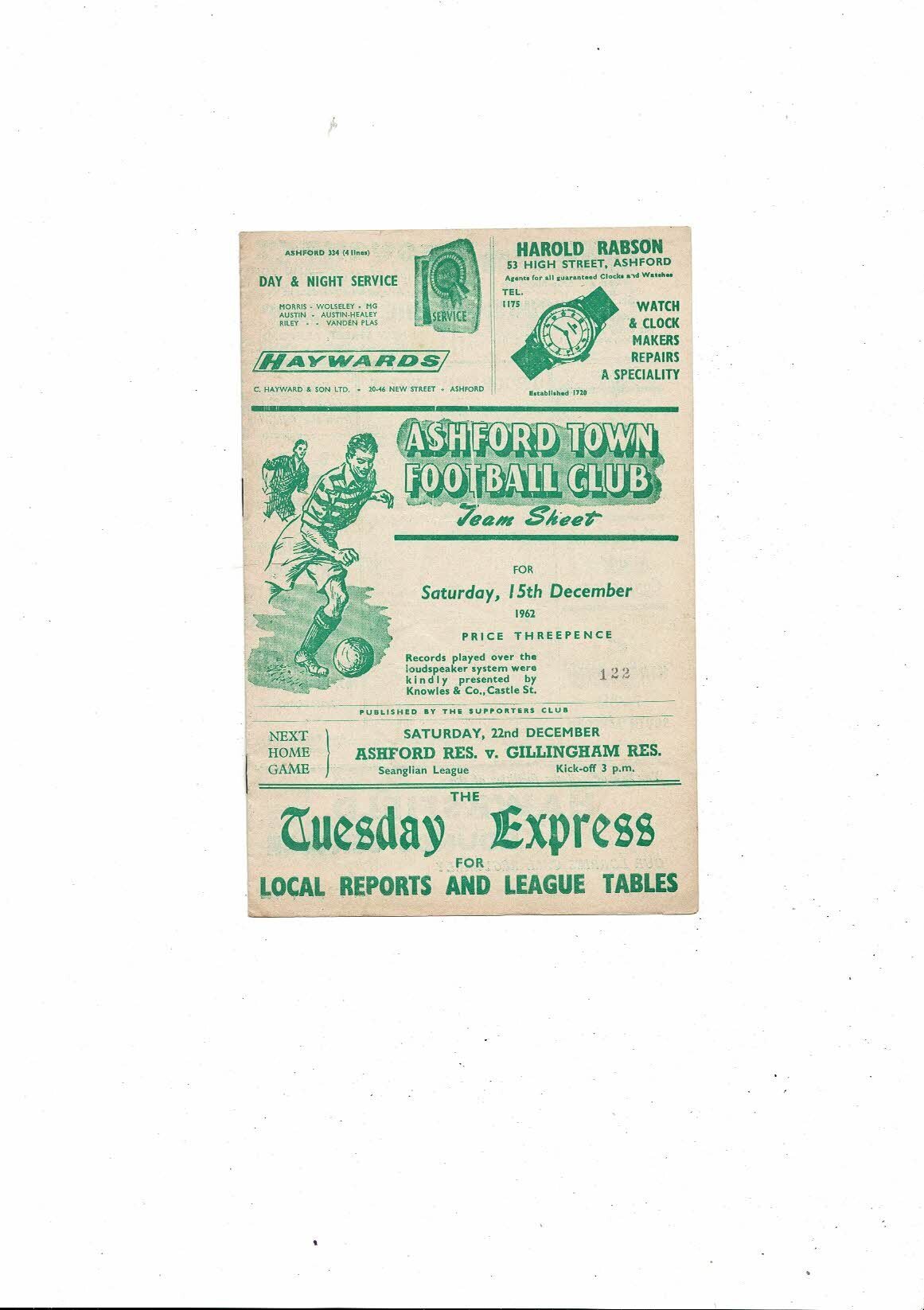 1962/63 Ashford Town v Canterbury City Southern League Football Programme