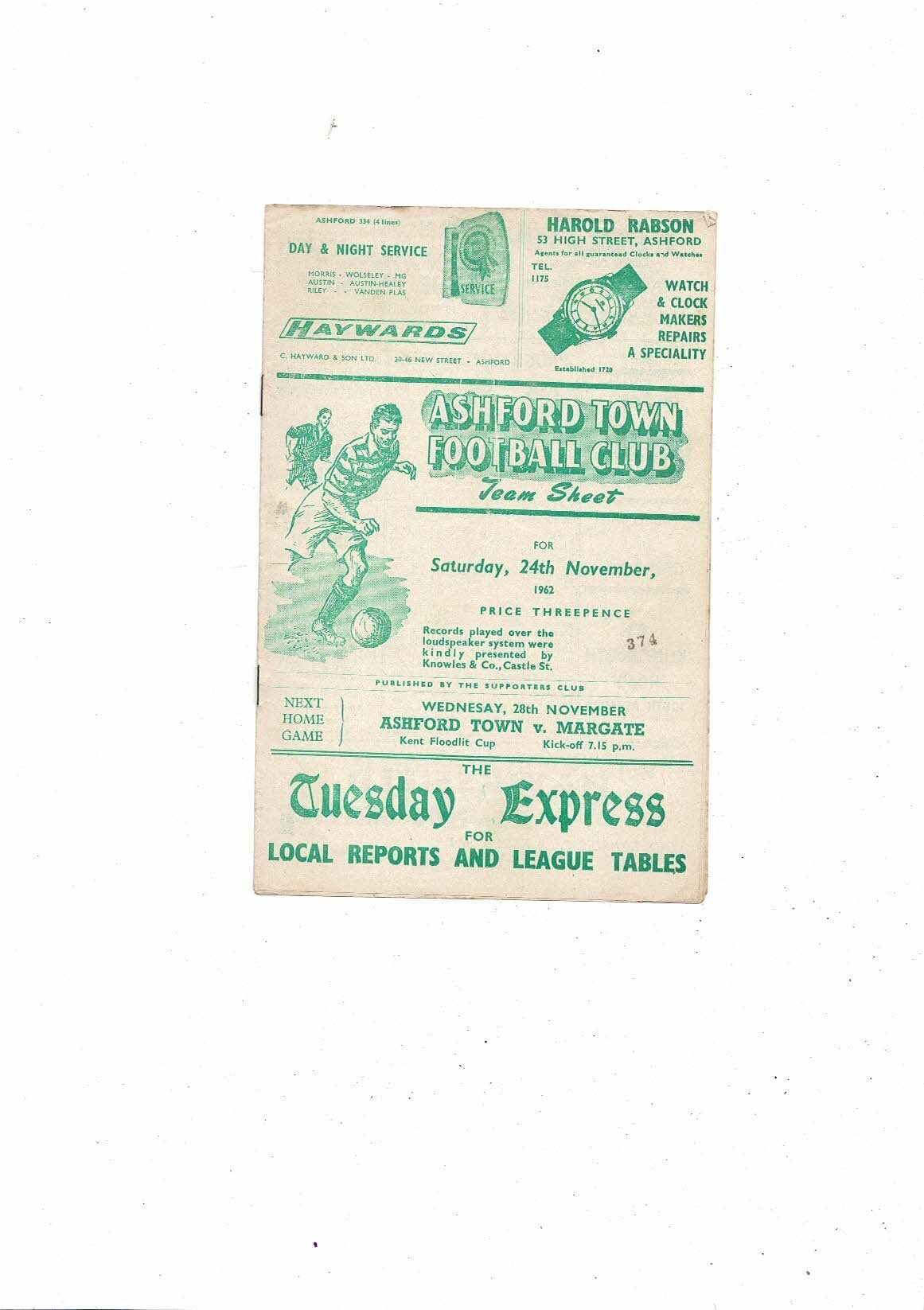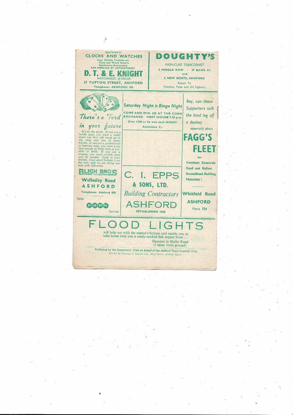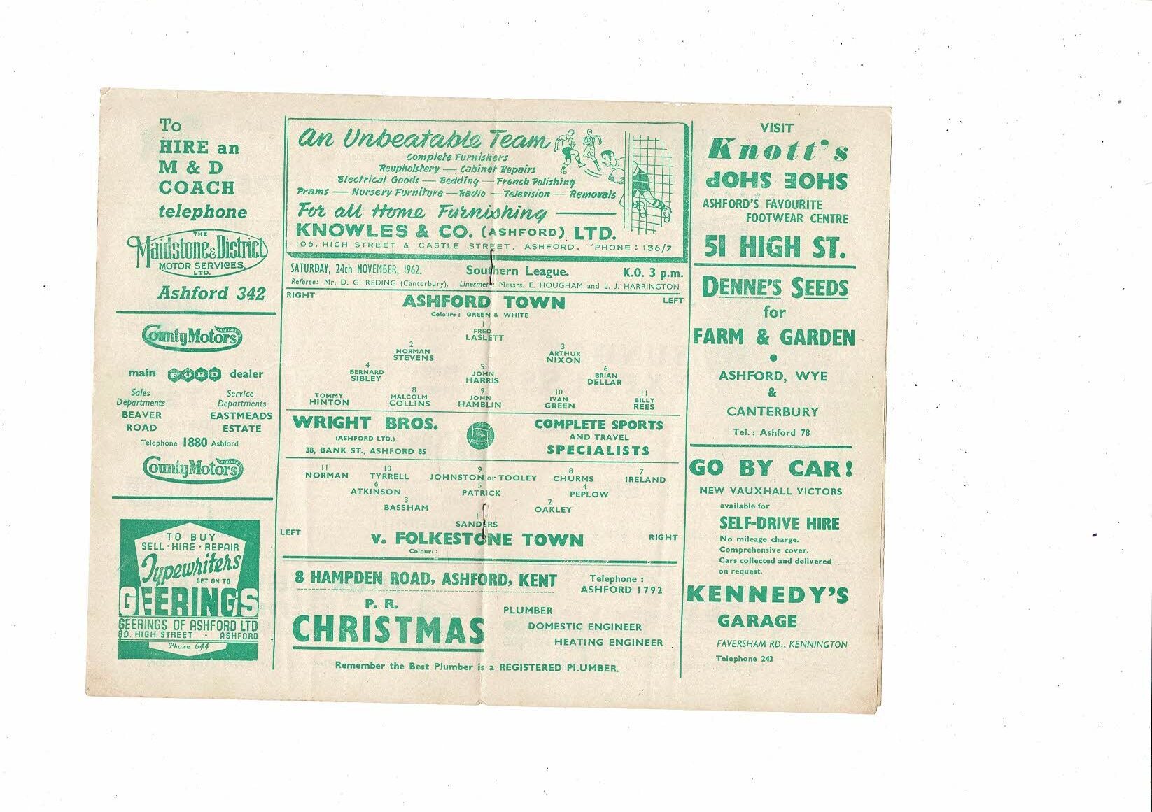1962/63 Ashford Town v Folkestone Town Southern League Football Programme