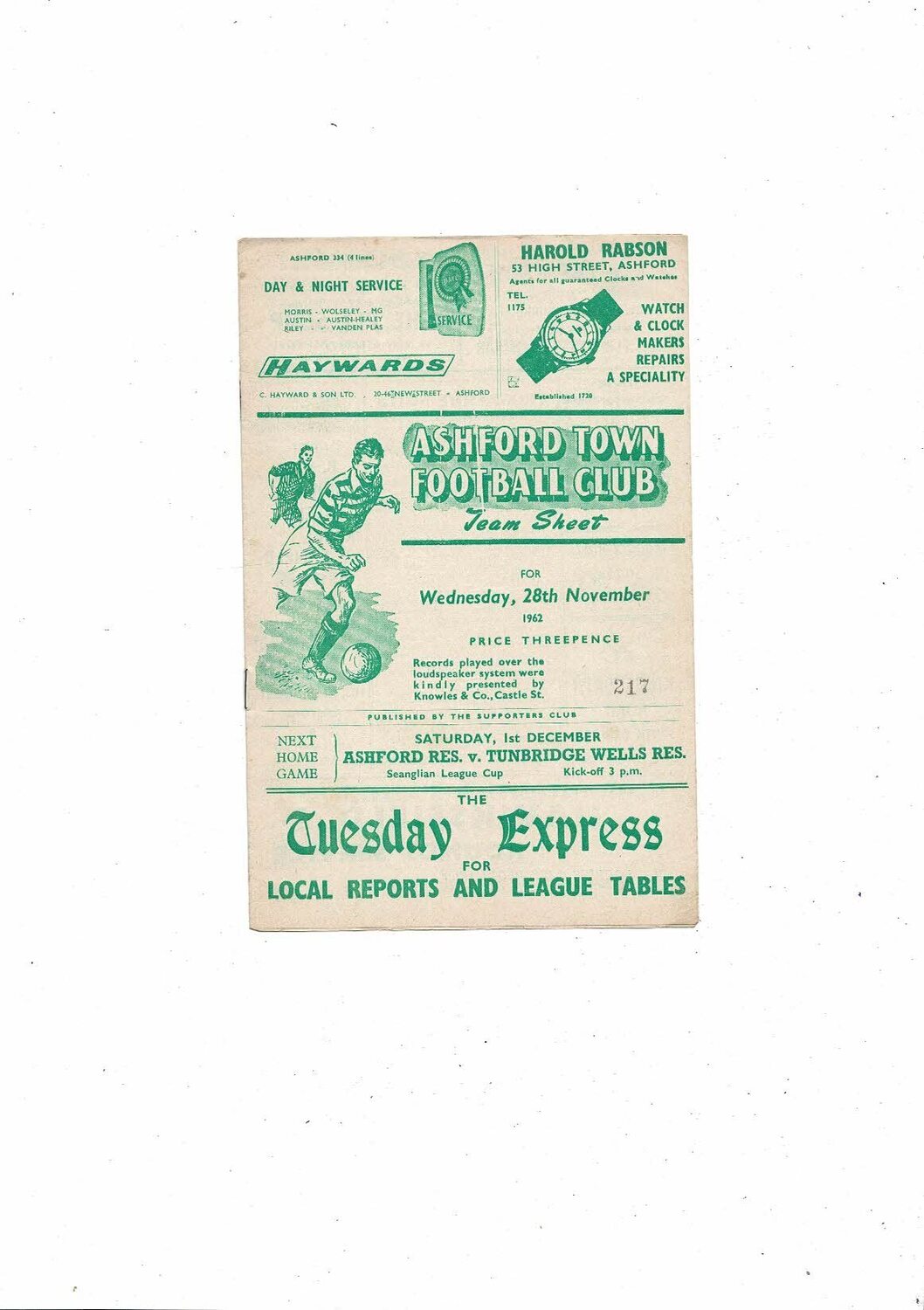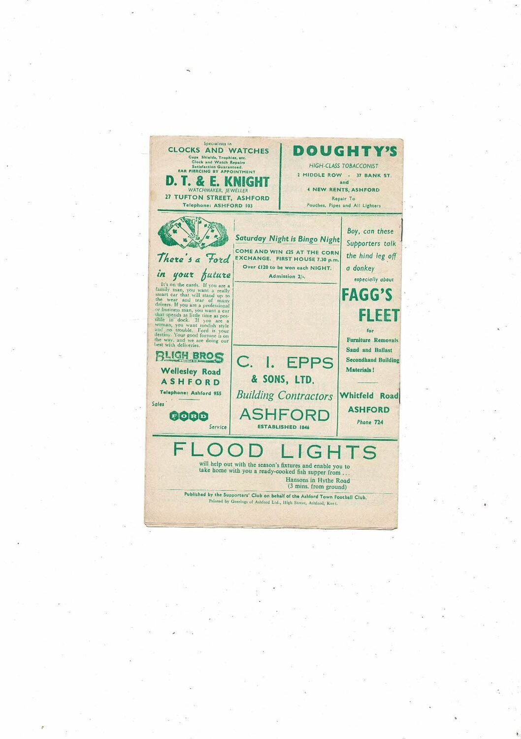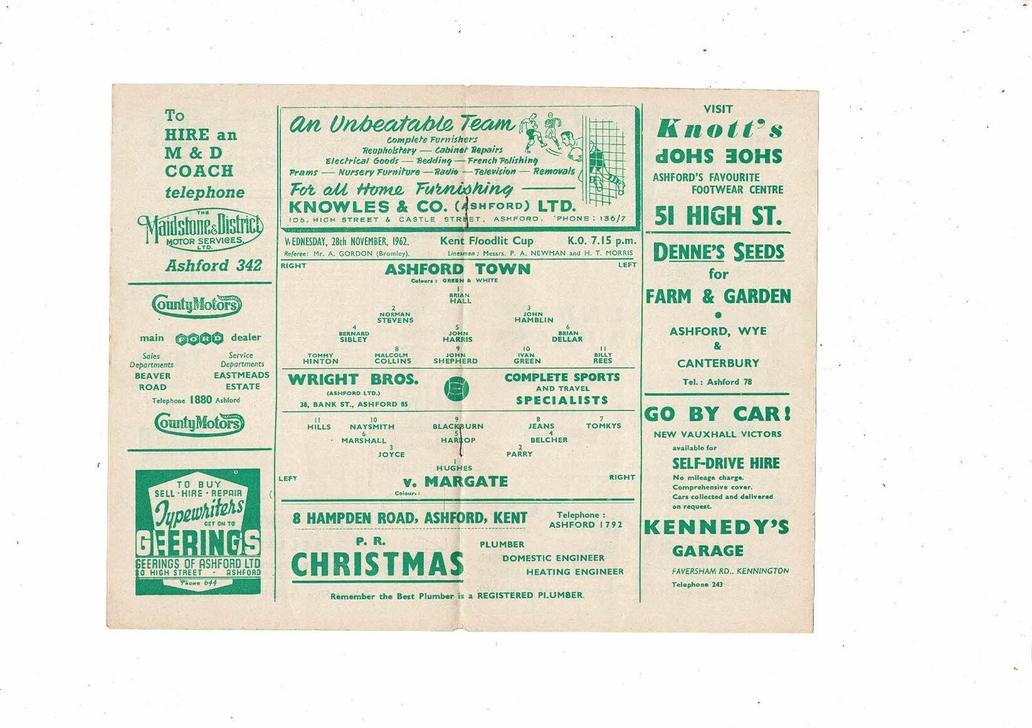 1962/63 Ashford Town v Margate Kent Floodlit Cup Football Programme